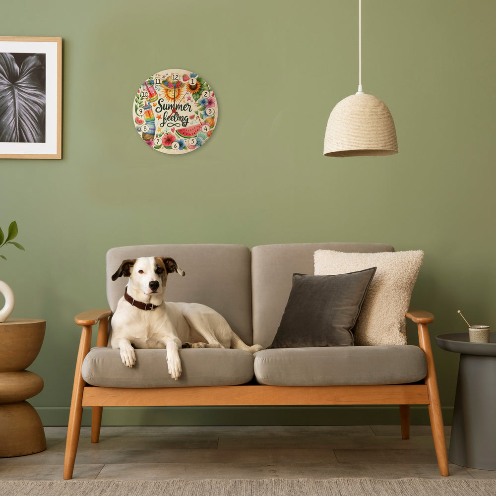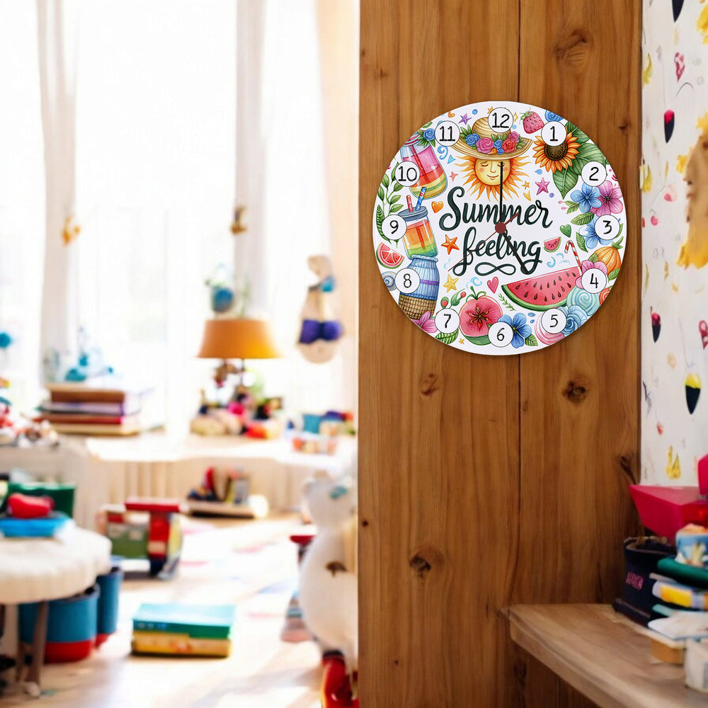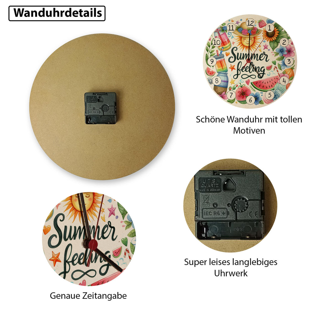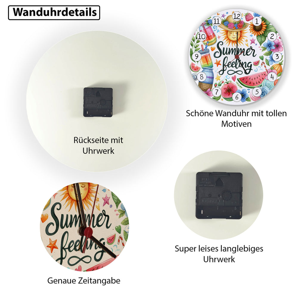 Sonne und Sommer Wanduhr mit Spruch Summer feeling