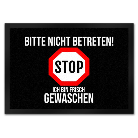 Fußmatte in 35x50 cm mit Spruch Bitte nicht betreten - ich bin frisch gewaschen - Stop