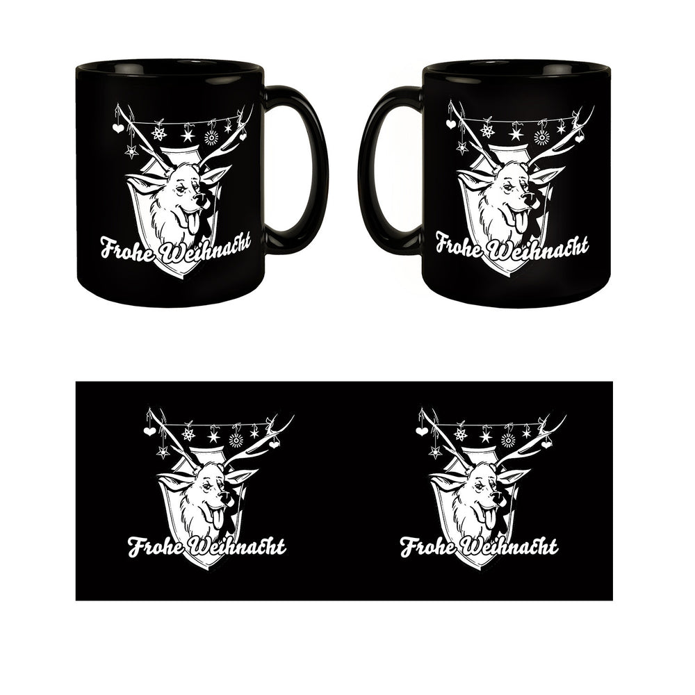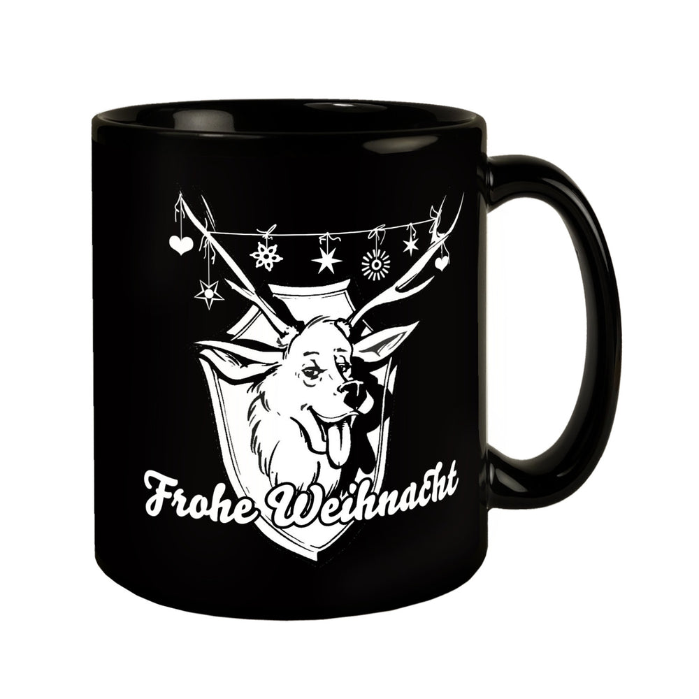 Hirschkopf Tasse in Schwarz mit Spruch: Frohe Weihnacht