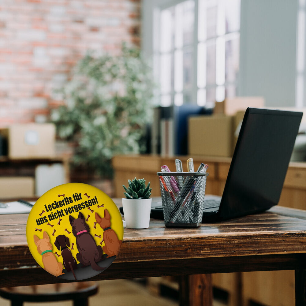 • 1x Hunde Magnet rund mit Spruch: Leckerlis für uns nicht vergessen! in der gewählten Ausführung