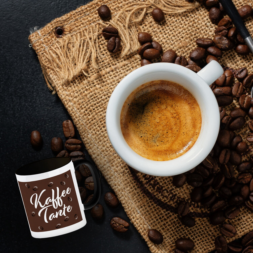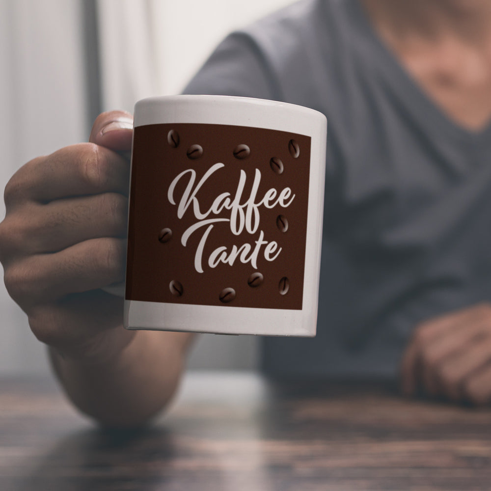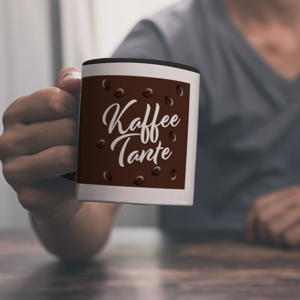 Kaffeetante Kaffeebecher zum Thema Koffeinjunkie
