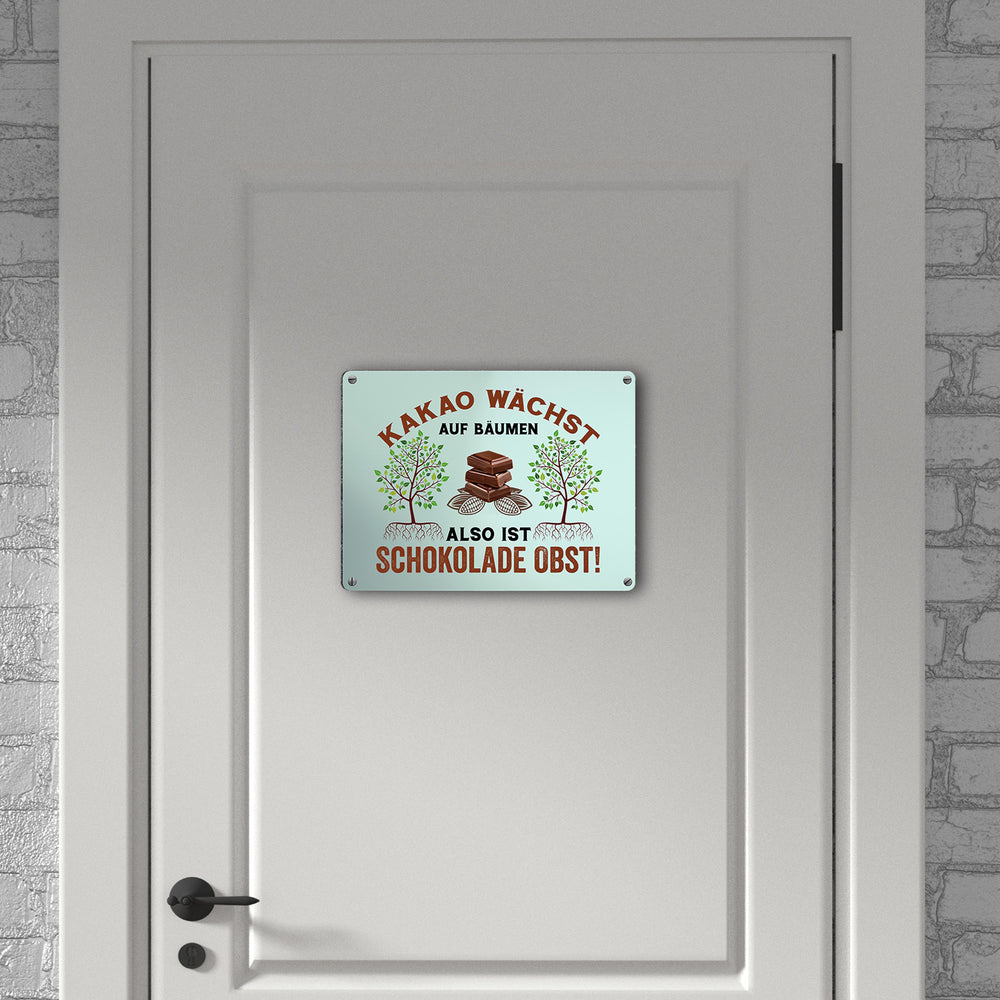 Kakao Metallschild in 15x20 cm mit Spruch Schokolade ist Obst
