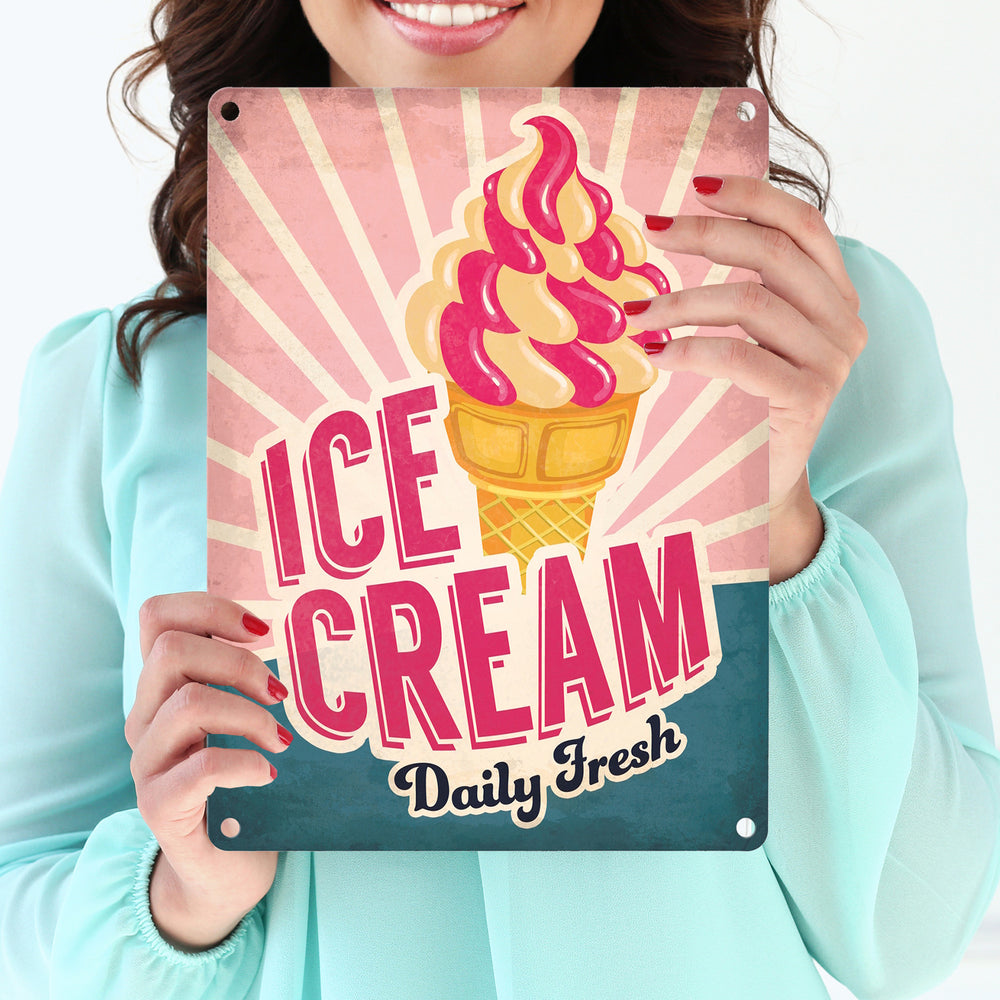 • 1x Metallschild mit American Diner Classics - Ice Cream Motiv in der gewählten Größe