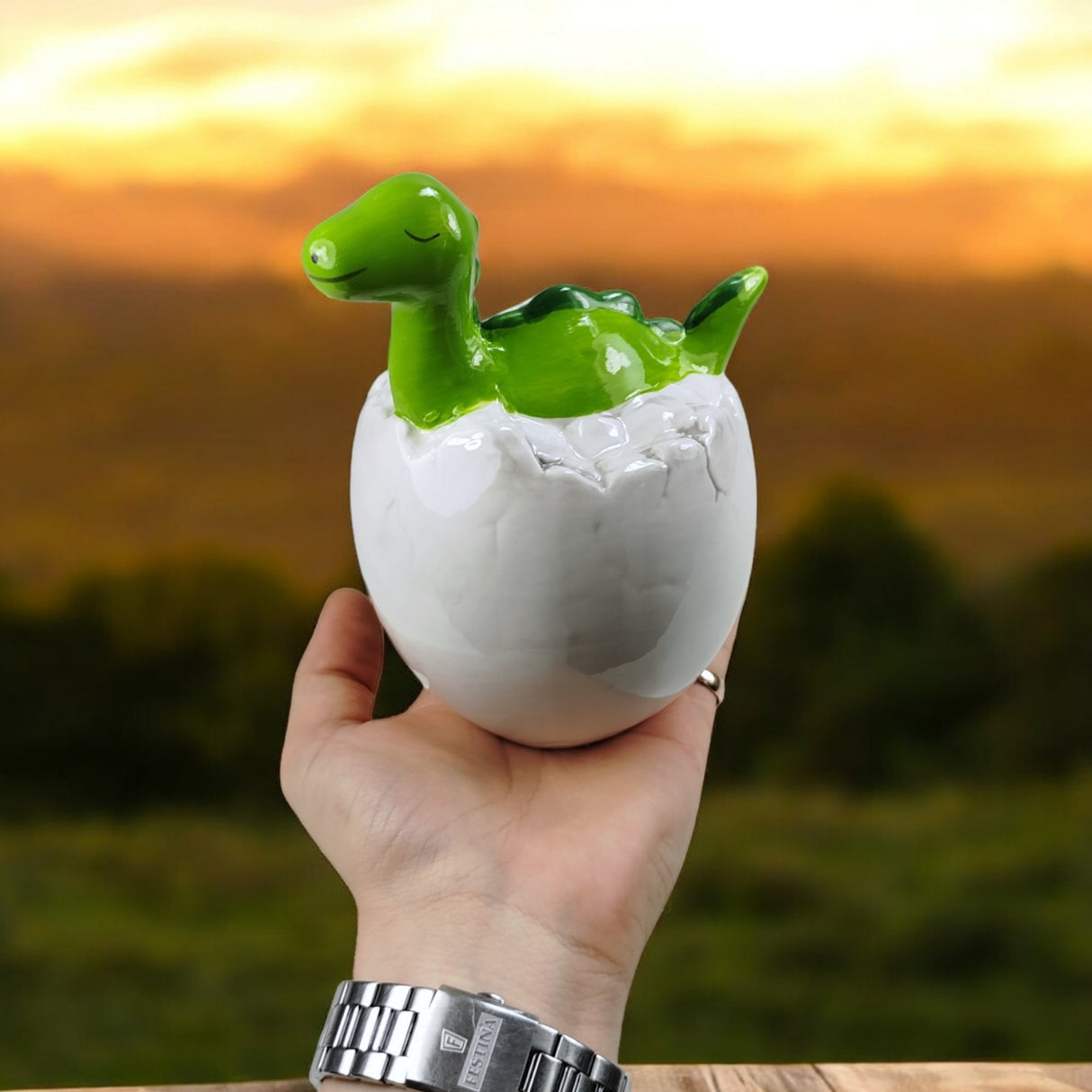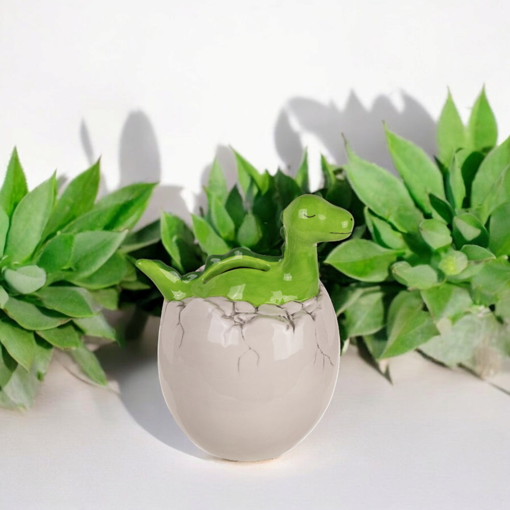 Keine Lust mehr auf langweiliges Sparen? Lass das Sparschweinchen im Dino-Ei schlüpfen und erwecke den Spar-Dinosaurier! Perfekt für Kinderzimmer – sicher und spaßig sparen! Material: Keramik