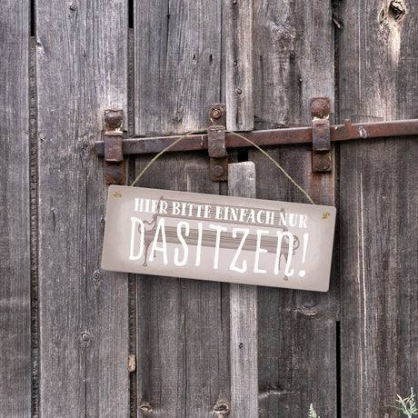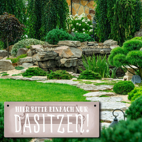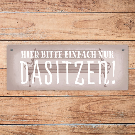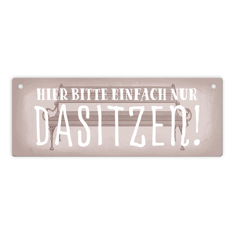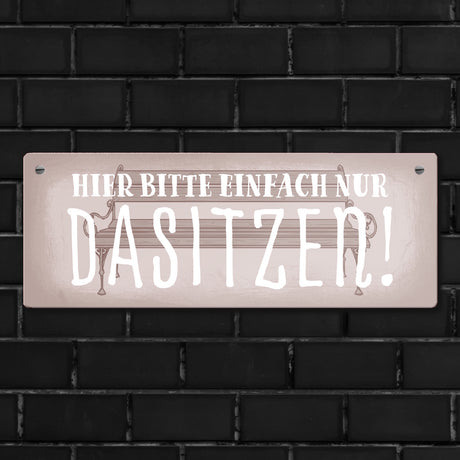 Hier bitte einfach nur dasitzen Metallschild mit Parkbank
