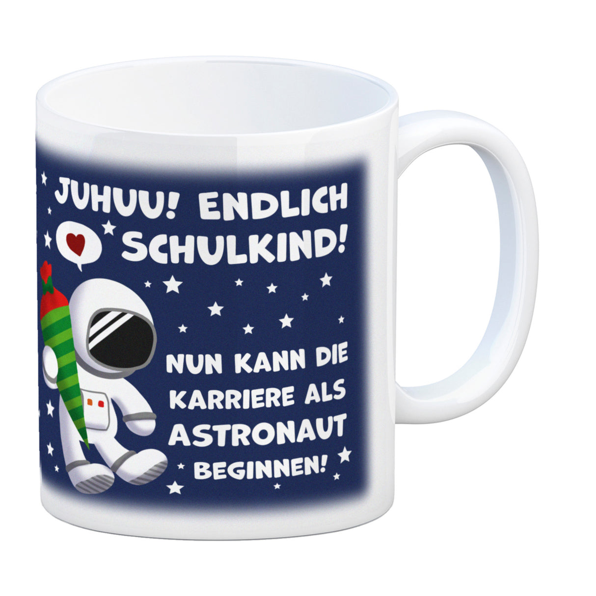 - Schenke deinem Sohn zur Einschulung in die Grundschule diesen Kaffeebecher mit einem kleinen Astronauten als kleine Überraschung in der Schultüte.
