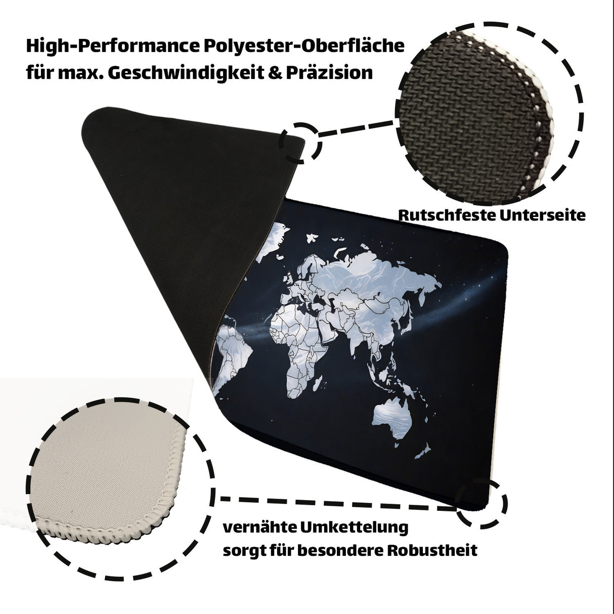 - 1x Weltkarte Sternenhimmel Schreibtischunterlage 69x31cm XXL Mauspad für Geographiefans in der gewählten Größe