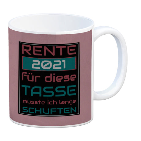 - 1x Rente 2021 Kaffeebecher - dafür musste ich lange arbeiten - Vintage Tasse bedruckt in der gewählten Ausführung