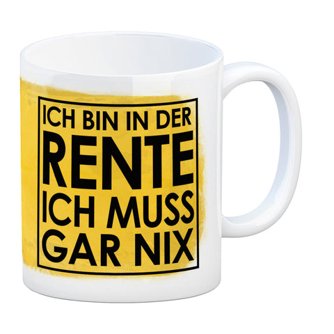Ente Ruhestand Kaffeebecher mit Spruch Ich bin in R-Ente Ich muss gar nix