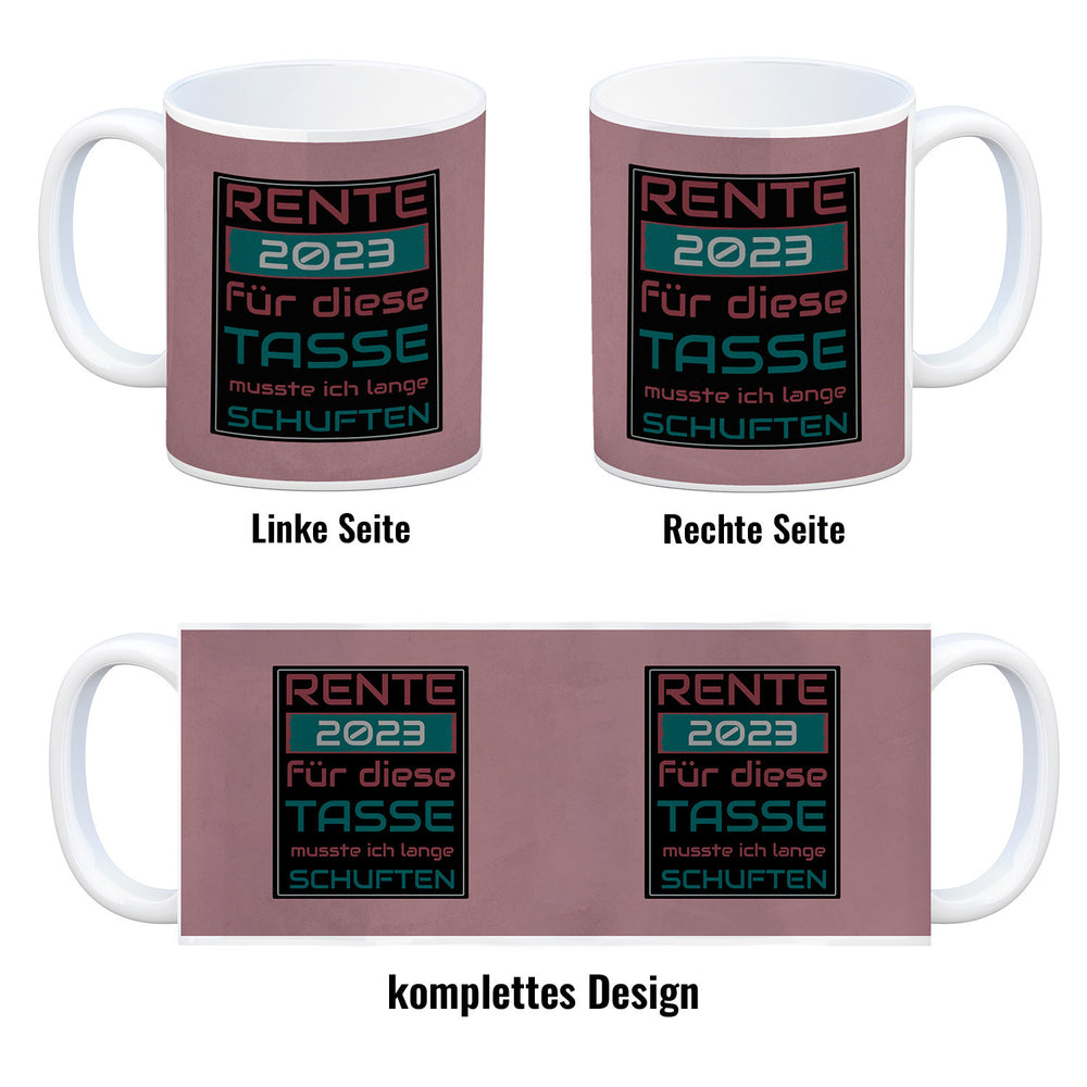 - 1x Rente 2023 Kaffeebecher - dafür musste ich lange arbeiten - Vintage Tasse bedruckt in der gewählten Ausführung