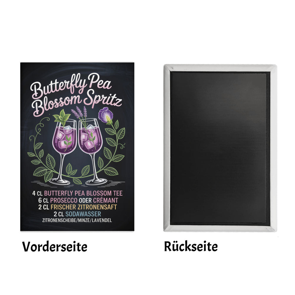 - Lieferumfang: 1x Butterfly Pea Blossom Spritz Souvenir Souvenir Magnet Cocktail-Rezept für die Bar oder Küche