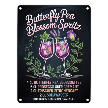 Butterfly Pea Blossom Spritz Metallschild in 15x20 cm Cocktail-Rezept für die Bar oder Küche