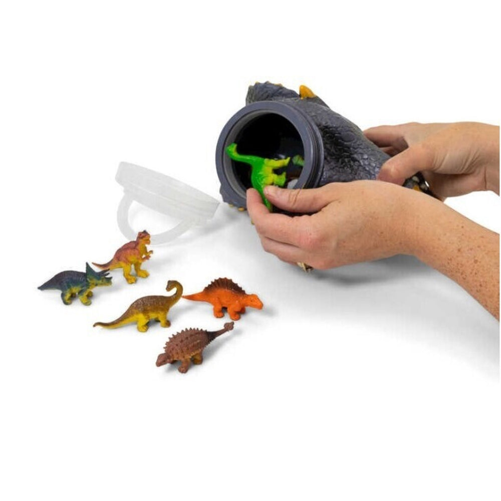 - Der Dinosaurierkopf dient als dekorative Aufbewahrungsmöglichkeit der kleinen Artgenossen.