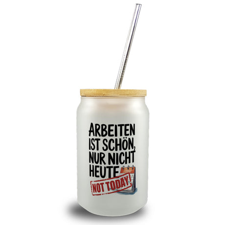 Nicht heute Arbeiten Trinkglas mit Bambusdeckel Arbeiten ist schön