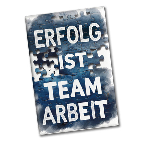 - Dieses Trinkglas kombiniert ein typografisches Aquarell-Design mit einem inspirierenden Spruch. Es zeigt ein Team-Puzzle in sanften Blautönen, das den Spruch "Erfolg ist Teamarbeit" trägt. Fehlende Puzzleteile symbolisieren unvollendeten Erfolg, den man nur gemeinsam erreichen kann. Ein echter Blickfang für jeden Schreibtisch oder Besprechungsraum.