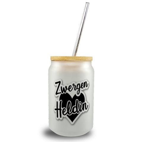 Zwergen Heldin mit Herz Trinkglas mit Bambusdeckel für Erzieherinnen