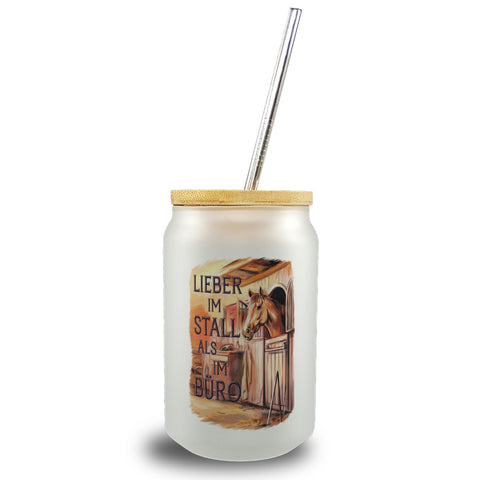 Lieber im Stall als im Büro Trinkglas mit Bambusdeckel Pferdemädchen