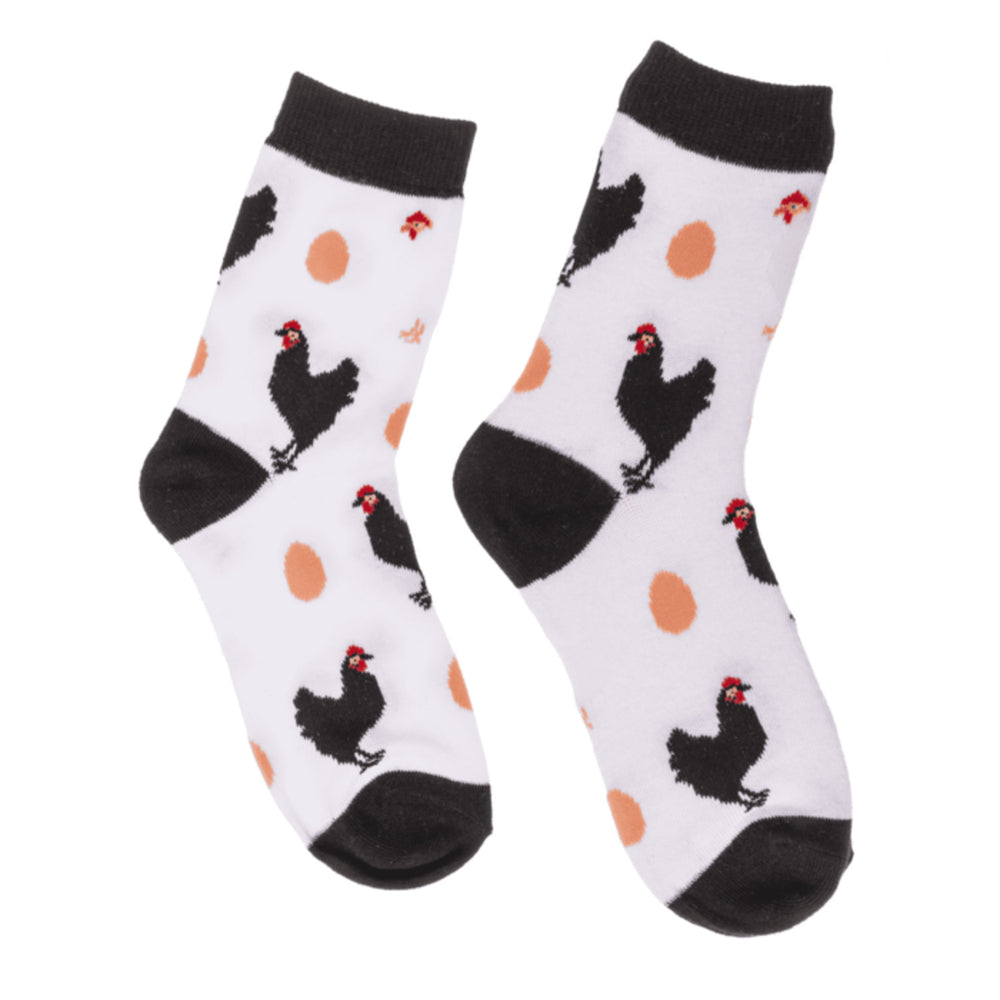 - Diese Socken sind eine echte Ode an den Hühnerstall! Mit ihrem charmanten Design in Weiß, Schwarz und Eierschale sind sie ein modisches Accessoire. Die liebevoll eingestickten Hühner und Eier verbreiten tierische Freude am Fuß und machen jedes Huhn Kostüm komplett. Gemütlich, stilvoll und garantiert hühnerfröhlich!