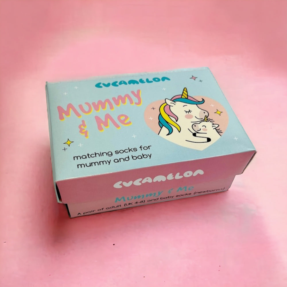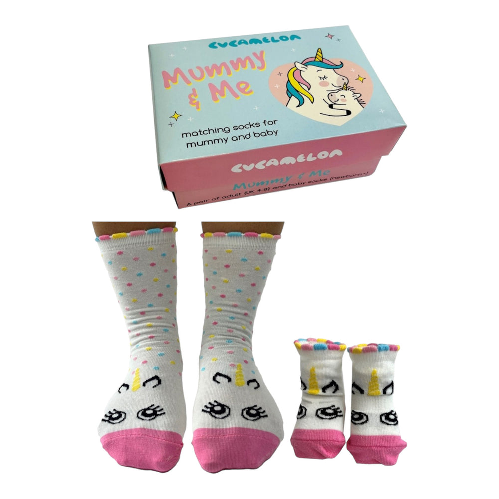 - 1x Mama und ich Cucamelon Socken Schwangerschaft Geschenk Einhorn Strumpf für Mutter und Kind (2 Paar).