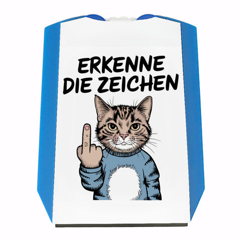 Katze mit Mittelfinger Zeichen Parkscheibe