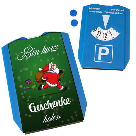 Parkscheibe mit Weihnachtsmann Motiv und Spruch - Bin kurz Geschenke holen