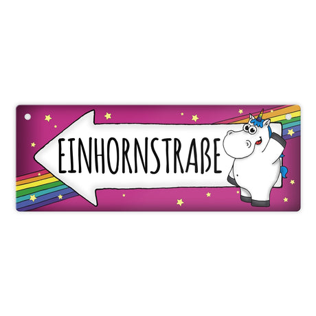 Honeycorns Metallschild mit Einhorn Motiv und Spruch: Einhornstraße