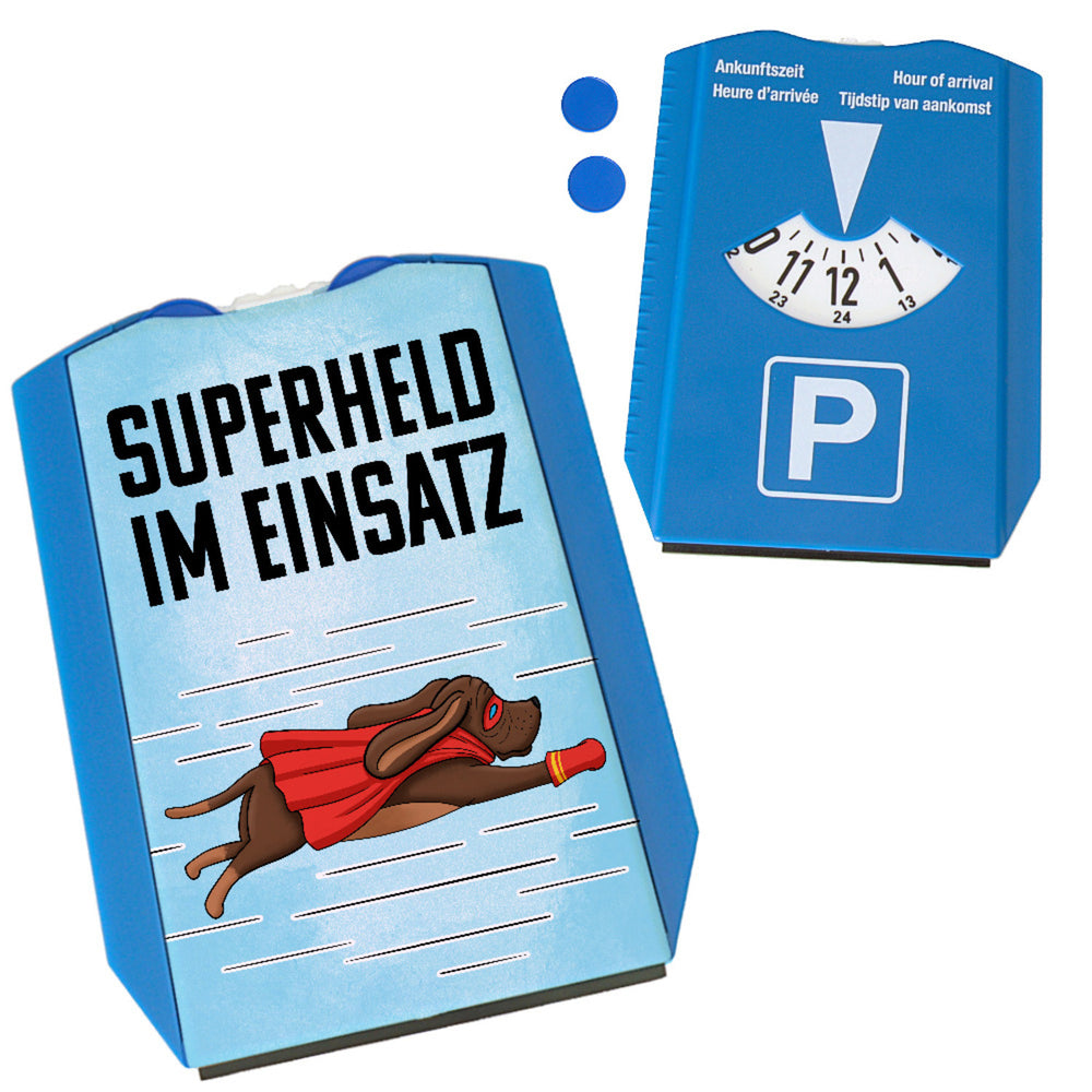 Superheld im Einsatz witzige Parkscheibe für Hundehalter