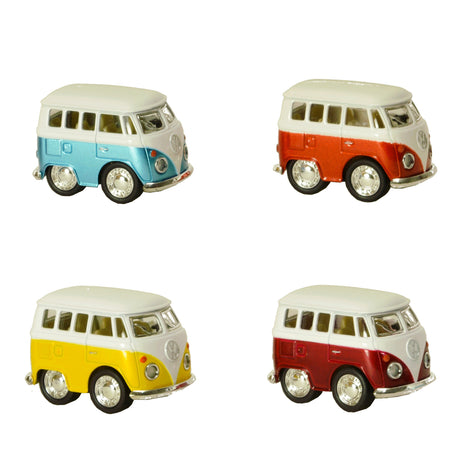 Volkswagen VW T1 Bus Comic Style Modellauto in rot mit Rückziehmotor