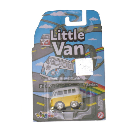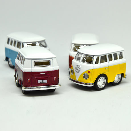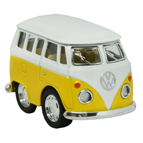 Volkswagen VW T1 Bus Comic Style Modellauto in gelb mit Rückziehmotor