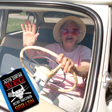 Aus dem Weg - ich muss grillen Parkscheibe mit 2 Einkaufswagenchips