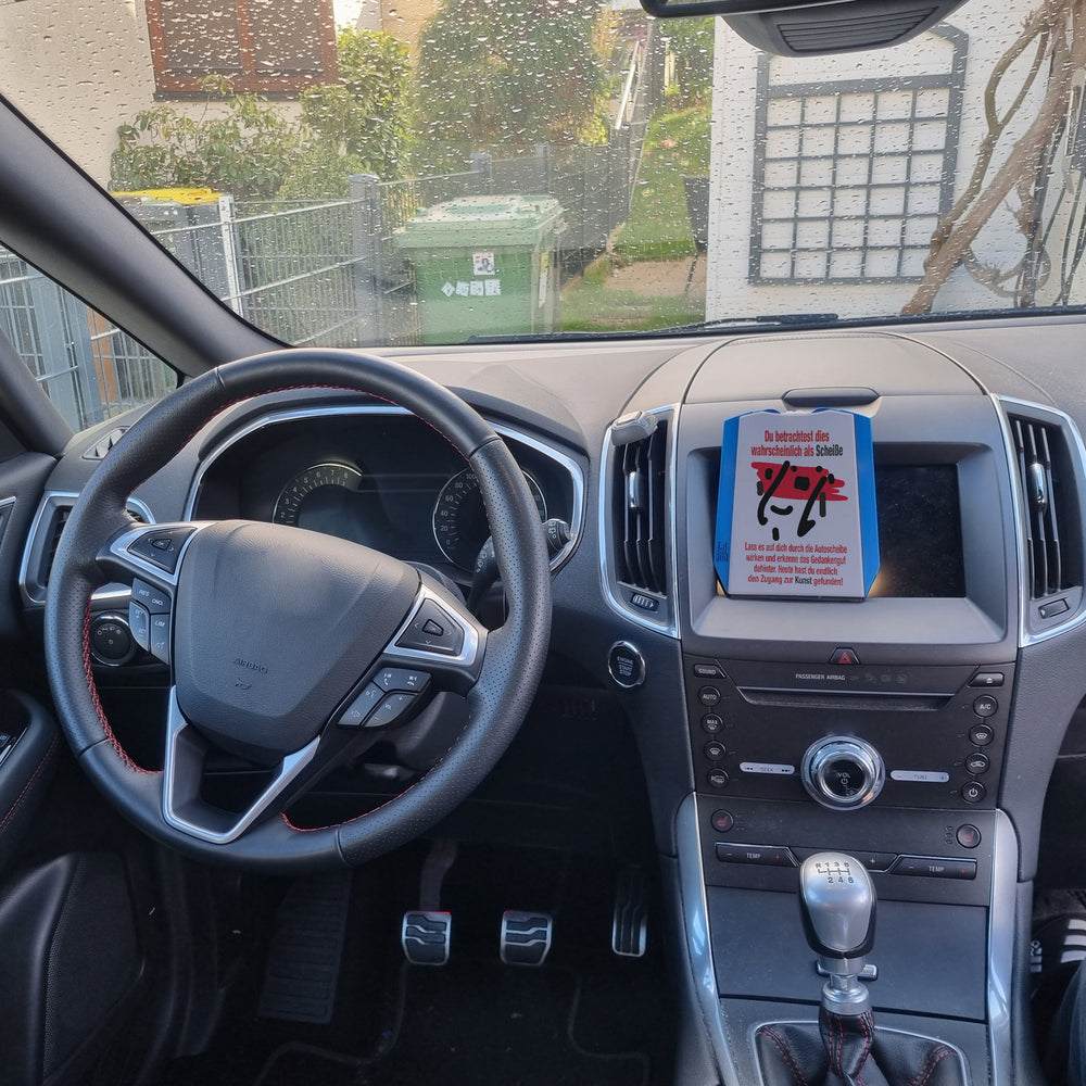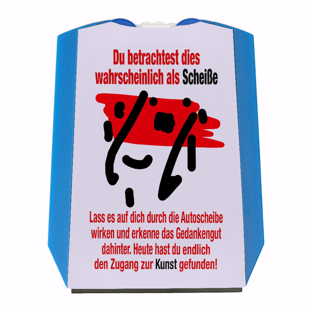 Stell dir vor, du stehst in einem grauen Parkhaus und suchst hektisch nach deiner Parkscheibe. Doch Moment! Was ist das? Ein Kunstwerk in deiner Hand! Unsere humorvolle Parkscheibe mit dem künstlerischen Spruch: „Du betrachtest dies wahrscheinlich als Scheiße. Lass es auf dich durch die Autoscheibe wirken und erkenne das Gedankengut dahinter. Heute hast du endlich den Zugang zur Kunst gefunden!“ bietet nicht nur praktischen Nutzen, sondern verwandelt dein Auto in eine mobile Galerie.Gefertigt aus stabilem Kunststoff, verfügt diese Parkscheibe über einen Eiskratzer, eine Tropfenleiste aus Gummi und zwei Einkaufswagenchips. Mit ihren Maßen von 15x12 cm passt sie perfekt in jedes Handschuhfach. Aber Vorsicht: Im Sommer nicht in die Sonne legen, damit die Kunst nicht überhitzt!Diese Parkscheibe ist ideal für alle, die das Alltägliche hinterfragen und Freude an humorvoller Kunst haben. Egal ob als Geschenk oder zum eigenen Gebrauch, sie sorgt für Stimmung im tristen Parkalltag und lädt zu spannenden Gesprächen ein. Ein einzigartiger Alltagshelfer, der garantiert für Lacher sorgt und dich jedes Mal inspiriert, wenn du einparkst! Hol dir jetzt deine humorvolle Parkscheibe und parkiere mit Stil und Humor!