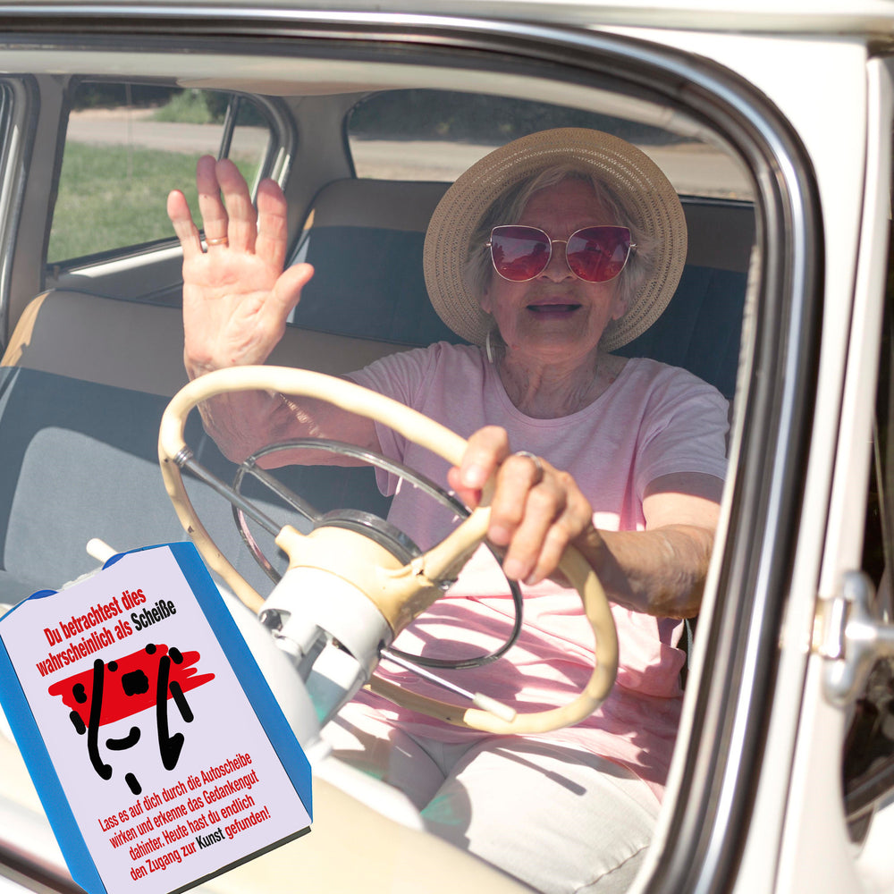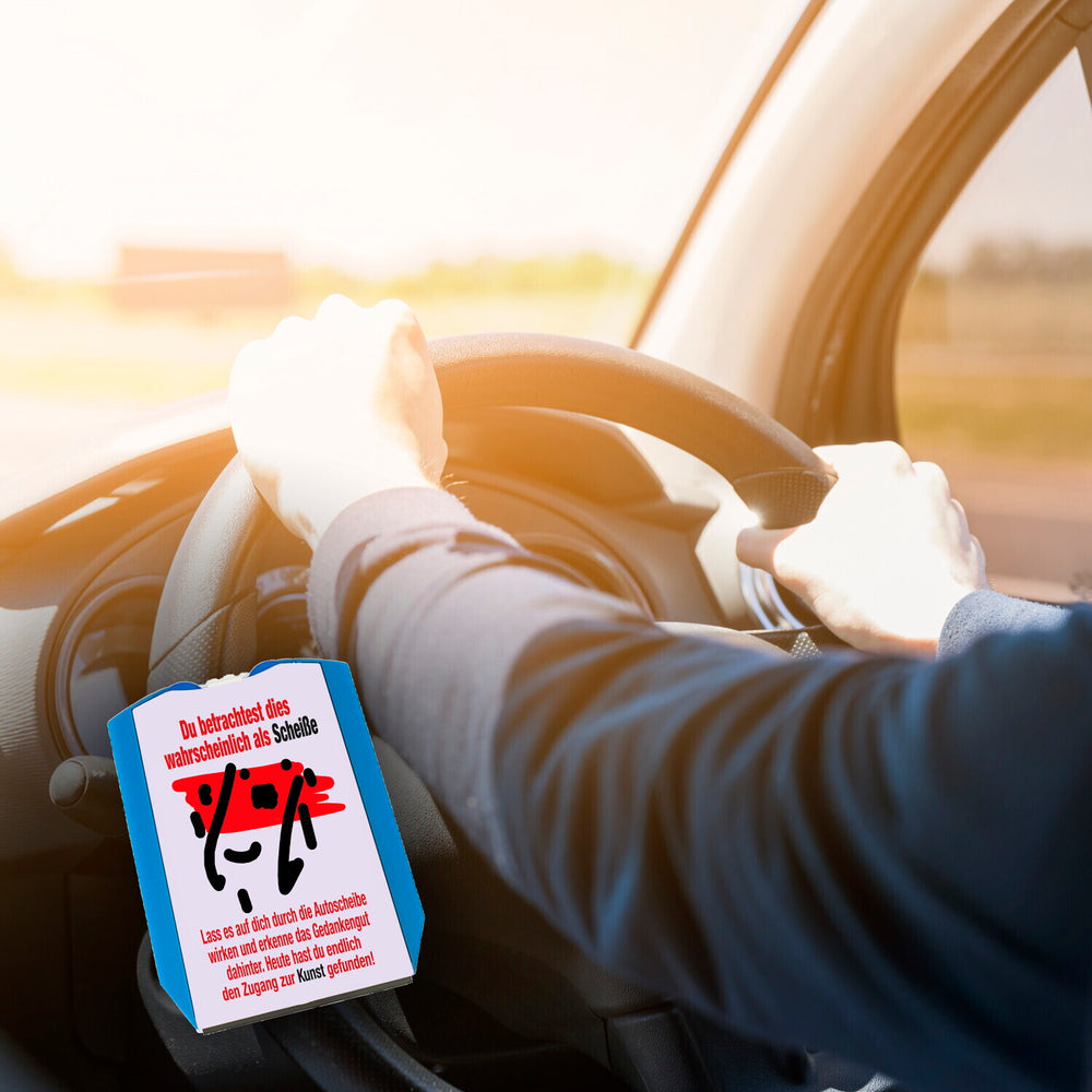 • Gönn dir oder einem kunstliebenden Freund diese ausgefallene Parkscheibe, die garantiert für Lacher sorgt. Ob Auto oder LKW, Straße oder Parkplatz - dieses Gedankengut bereichert jede Fahrt. Hol dir deinen Zugang zur Kunst durch die Autoscheibe und mach dein Fahrzeug zur fahrenden Galerie!