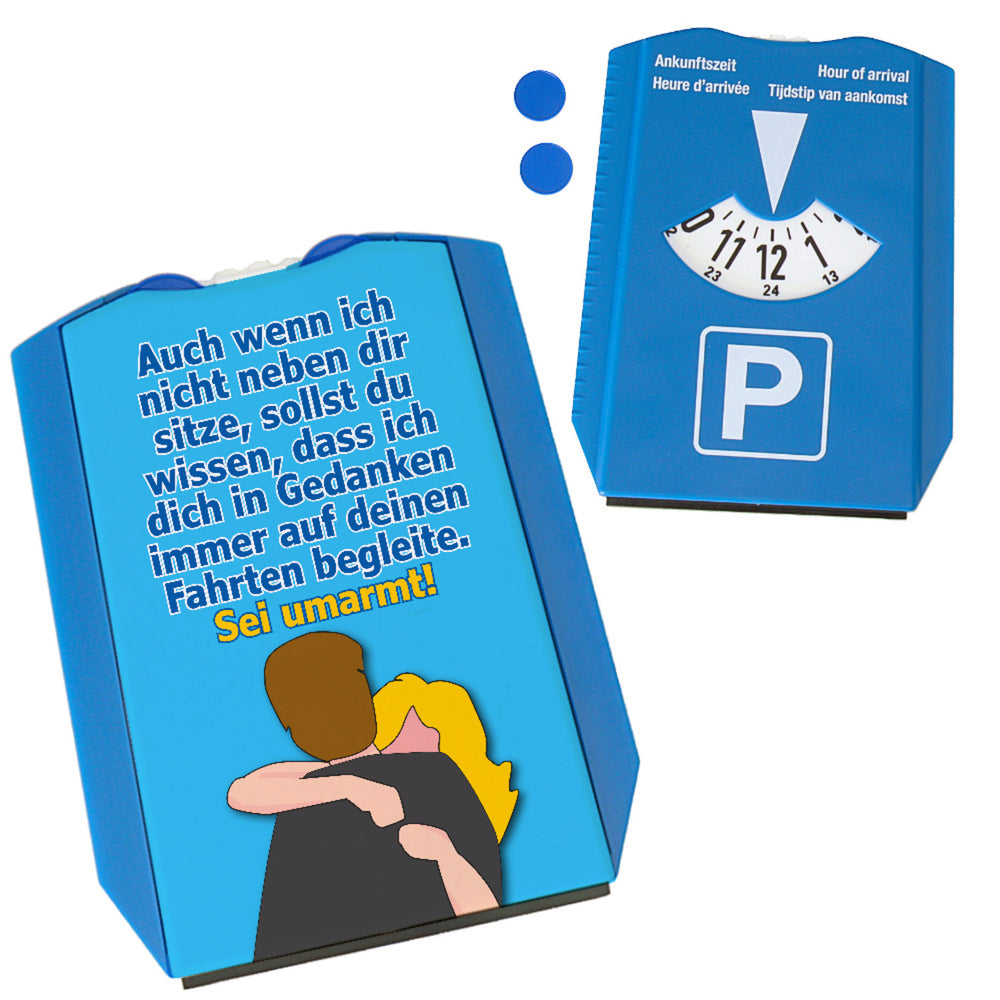 Sei umarmt! Parkscheibe mit Spruch In Gedanken immer bei dir