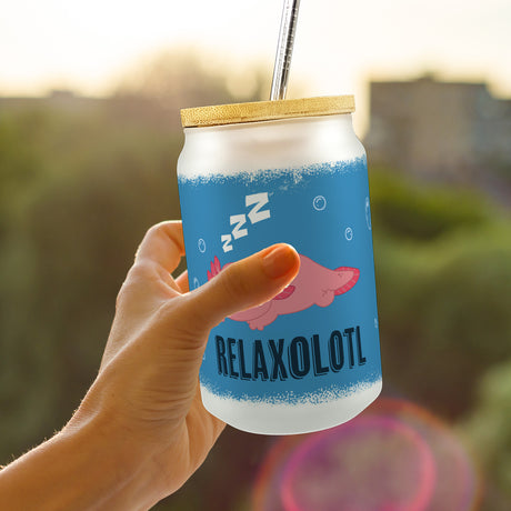 €14,95Grundpreis /Nicht verfügbarAuf LagerRelaxolotl Trinkglas mit Bambusdeckel mit schlafenden Axolotl