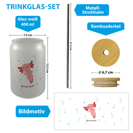 €14,95Grundpreis /Nicht verfügbar Axolotl Trinkglas mit Bambusdeckel mit Spruch Drink Alotl