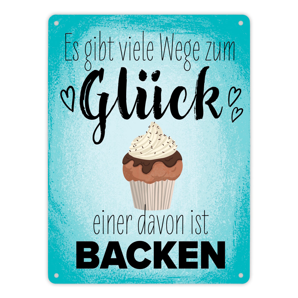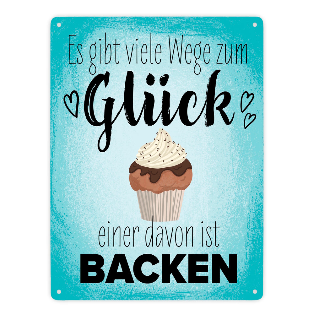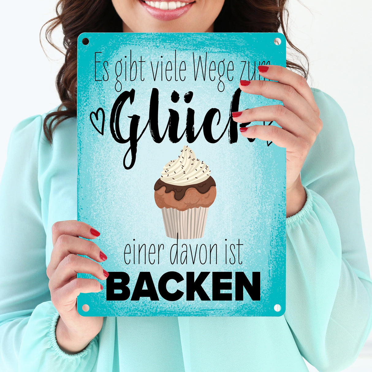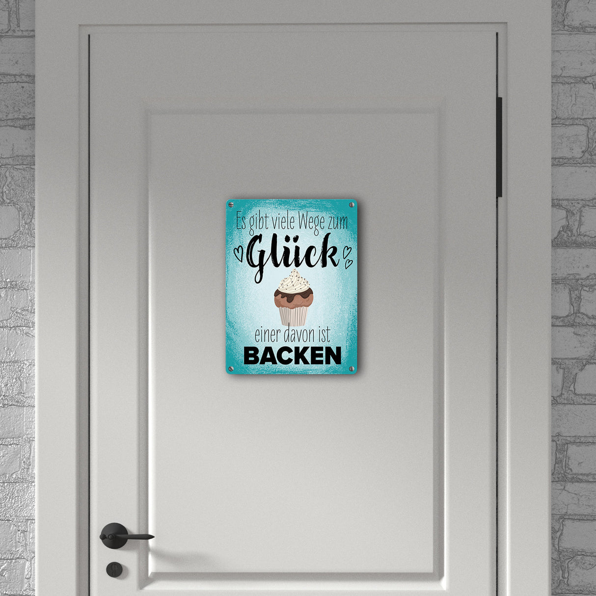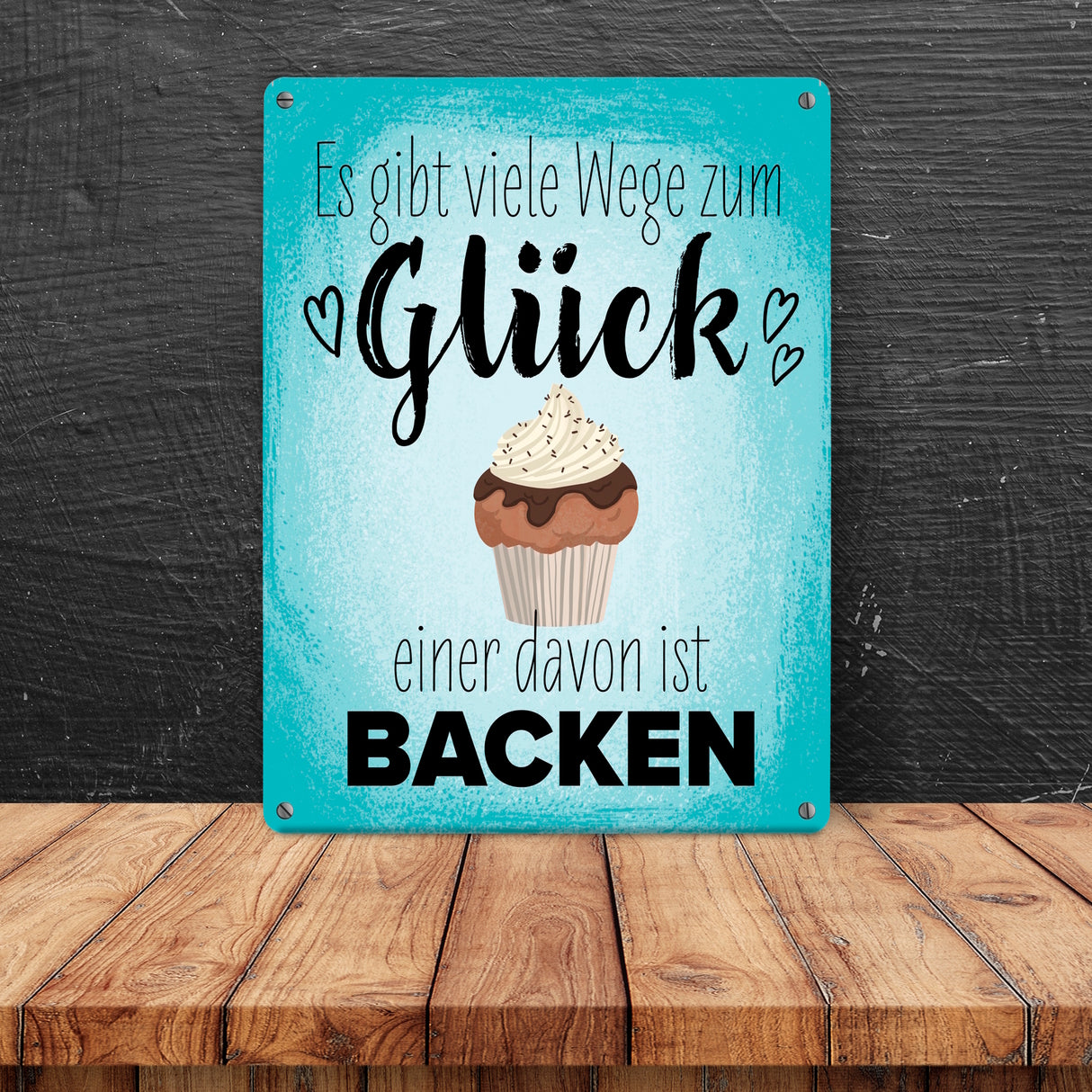 - 1x Es gibt viele Wege zum Glück - einer davon ist Backen Metallschild in der gewählten Größe