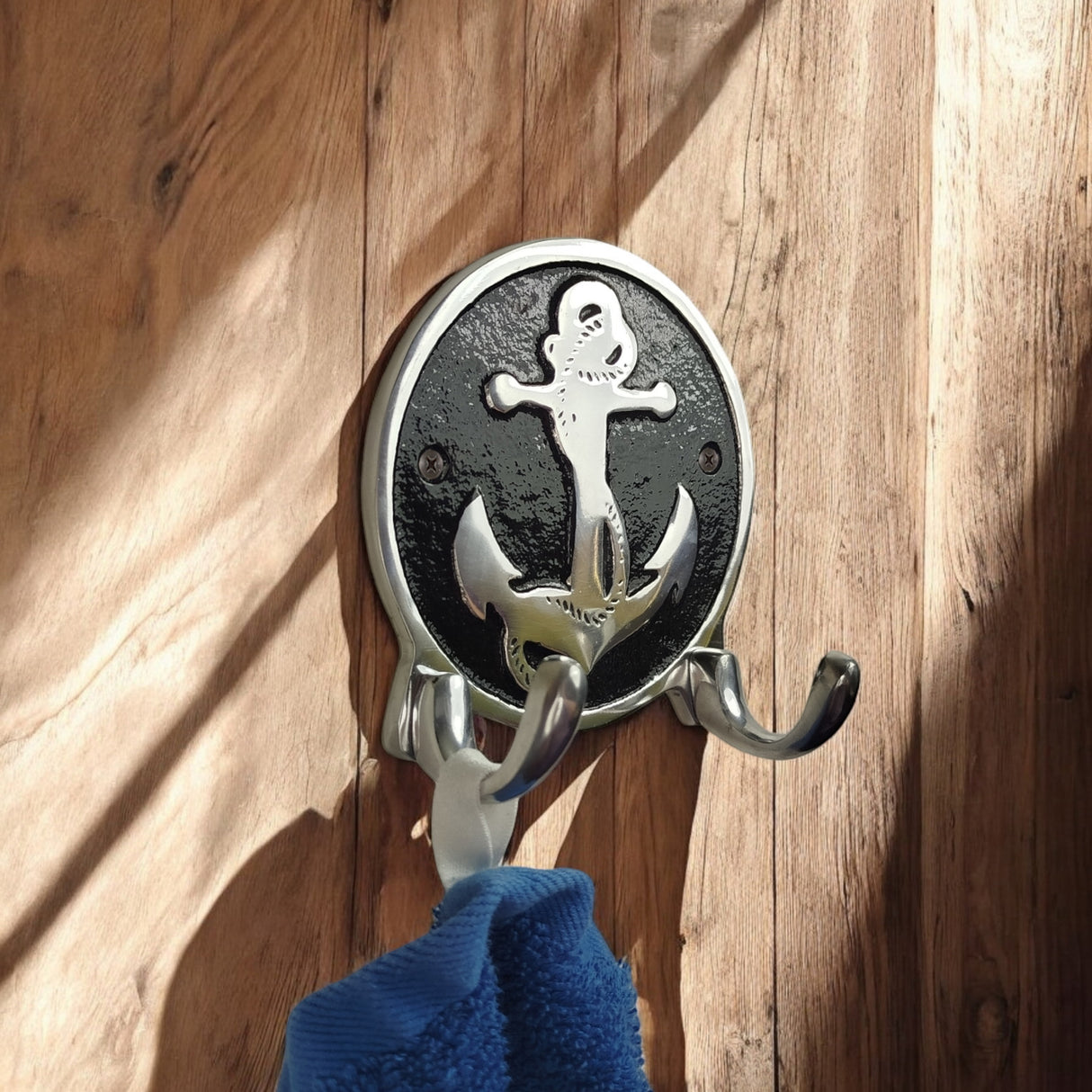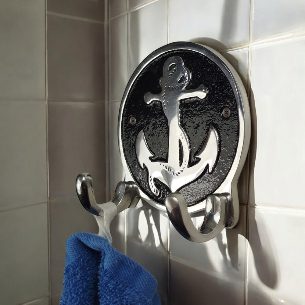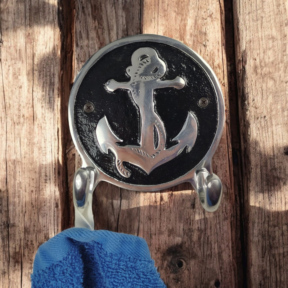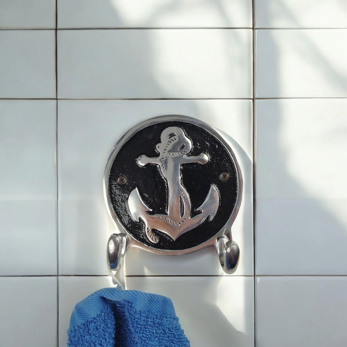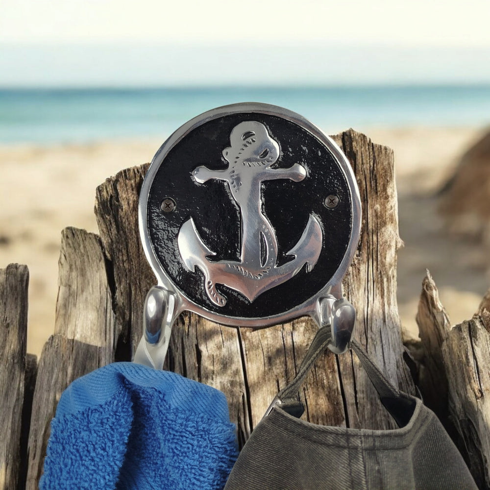 • 1x Anker Plakette Kleiderhaken aus Metall.