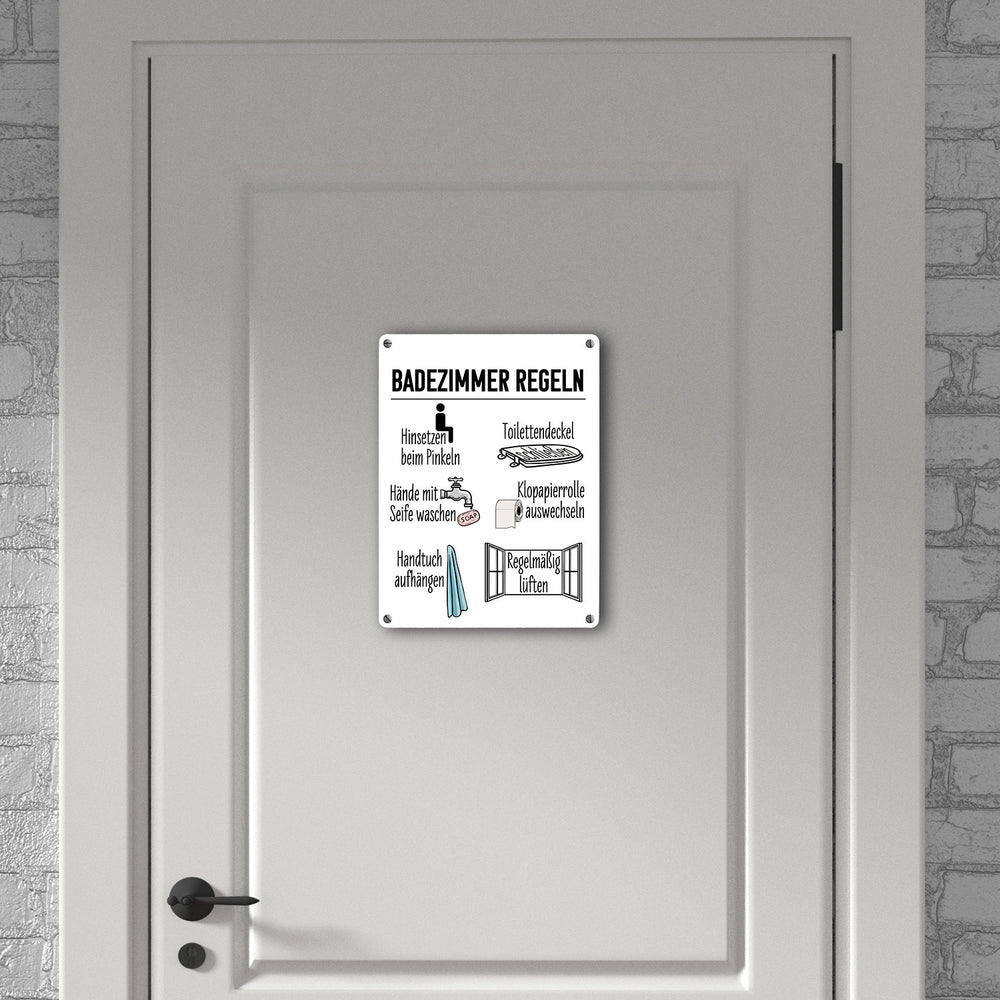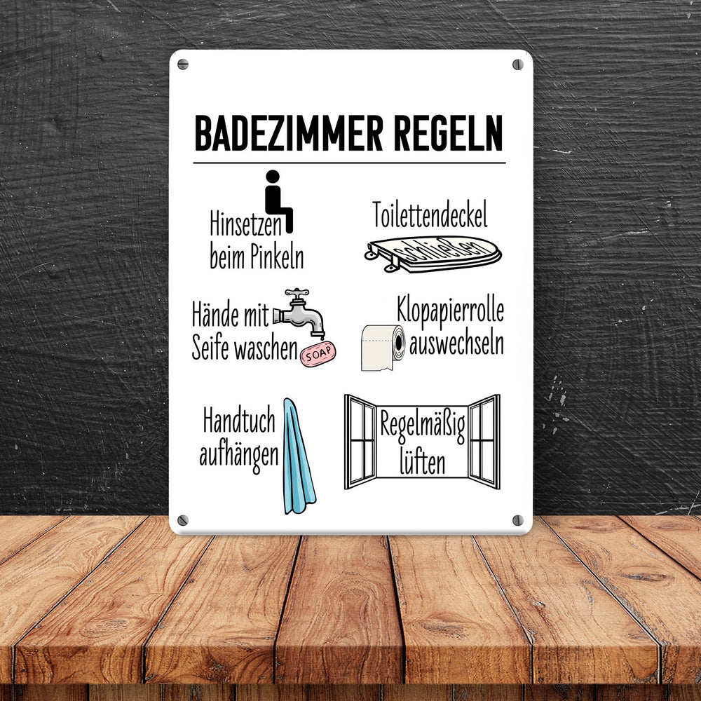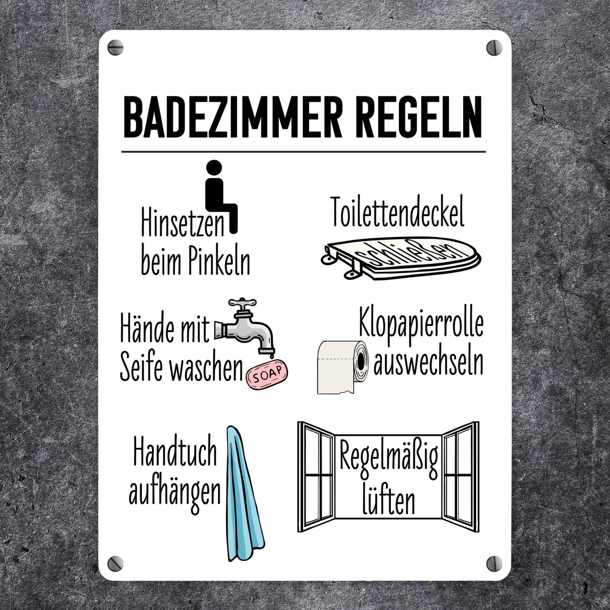 - 1x Badezimmer Regeln für ein hygienischeres Bad Metallschild in der gewählten Größe