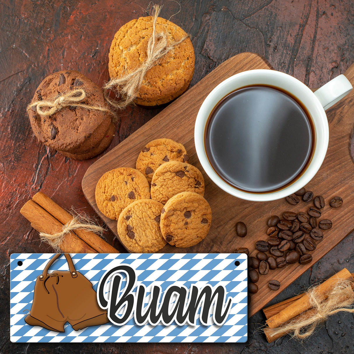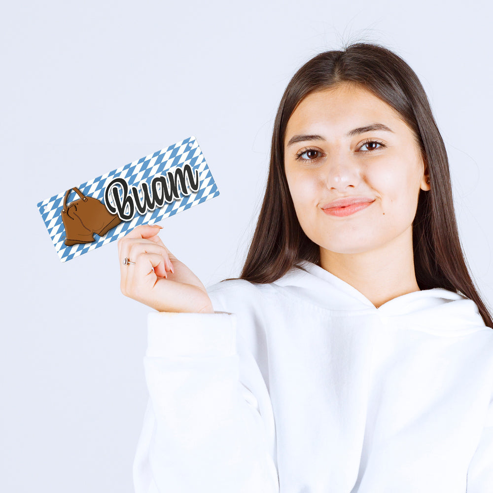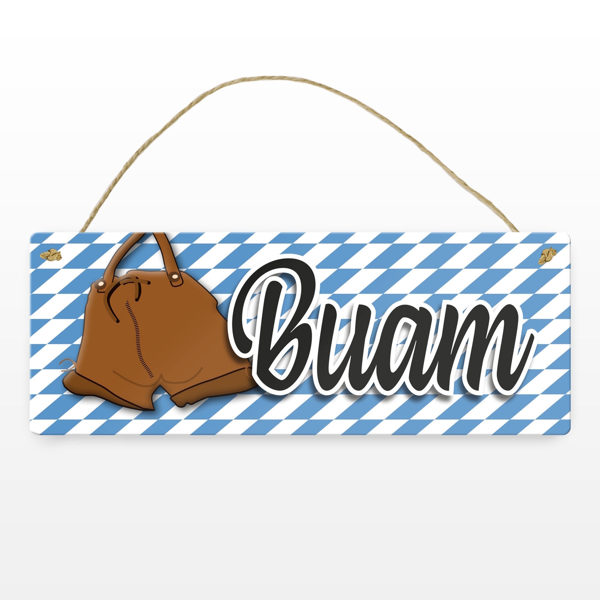 - Witziges Metallschild für echte Buam! Dieses Toilettenschild bringt den bayerischen Charme direkt ins Badezimmer. Mit dem originellen Design einer kurzen braunen Lederhose und dem bayrischen Wort "Buam" ist Lachen garantiert.