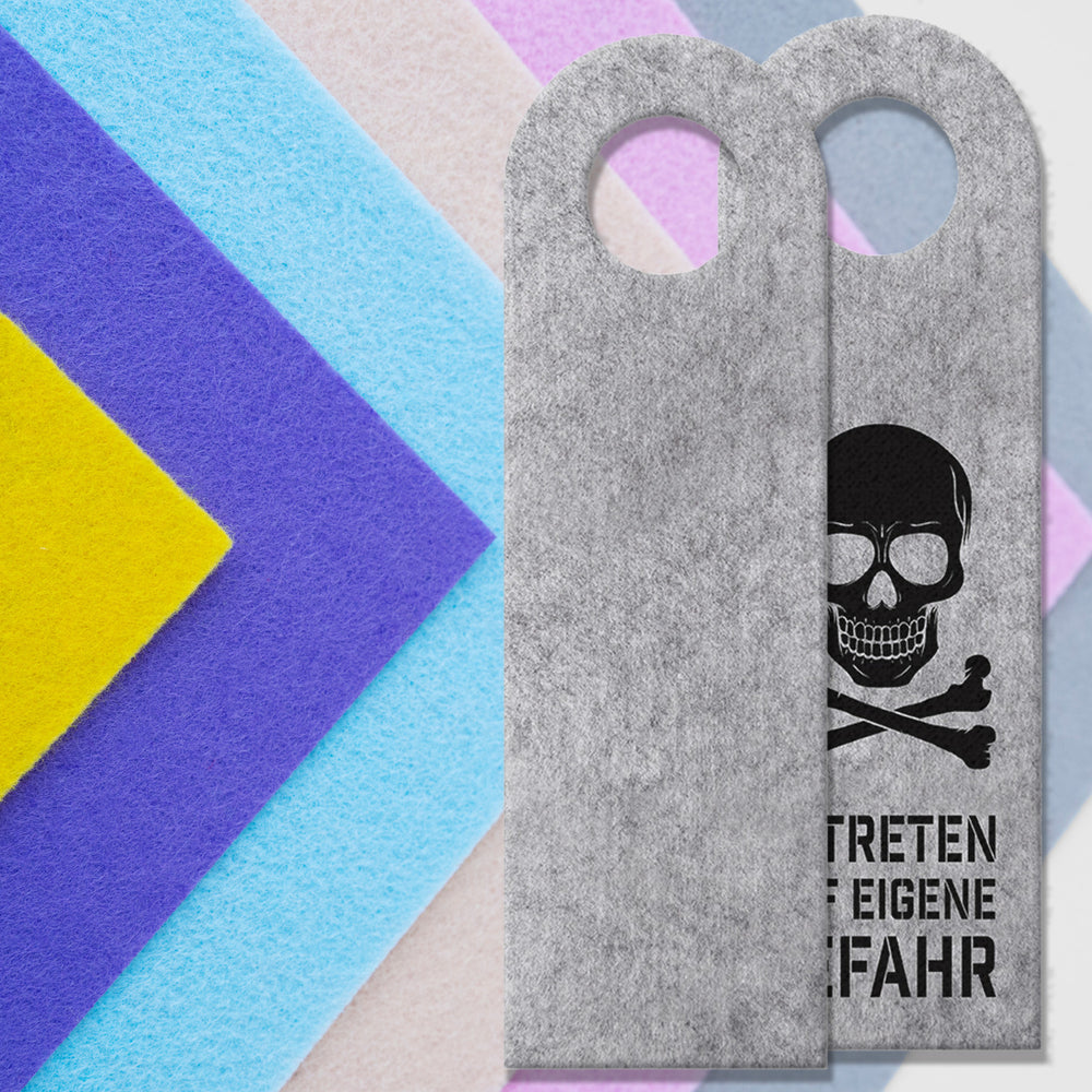 - Einzeln erhältlich oder als 3er- und 10er-Sparset. Aus hochwertigem Filz mit praktischem Loch für die Türklinke. Mit Sorgfalt in Handarbeit hergestellt in unserer Türhänger-Manufaktur in Deutschland.