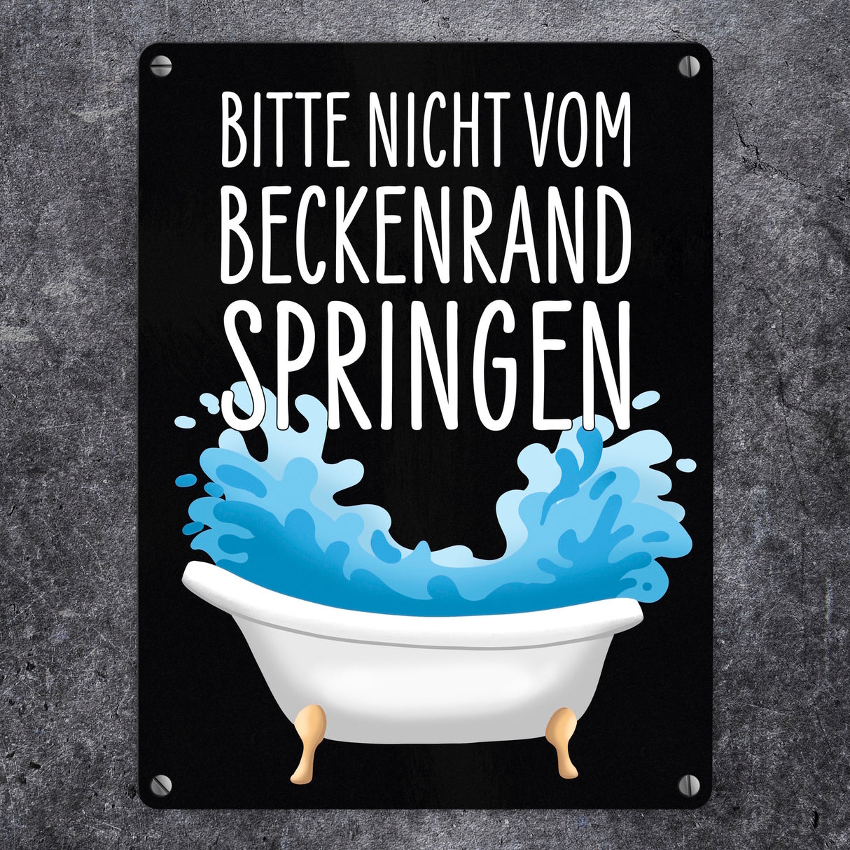 - Wer den Luxus einer Badewanne hat der weiß, dass danach auch schnell alles nass werden kann, besonders wenn Kinder darin planschen. Mit diesem witzigen Metallschild hast du eine passende Dekoration für dein Badezimmer.