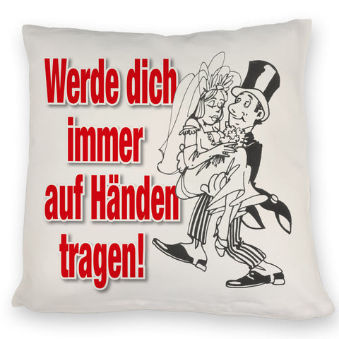 Ehepaar Kissen mit Spruch Werde dich immer auf Händen tragen