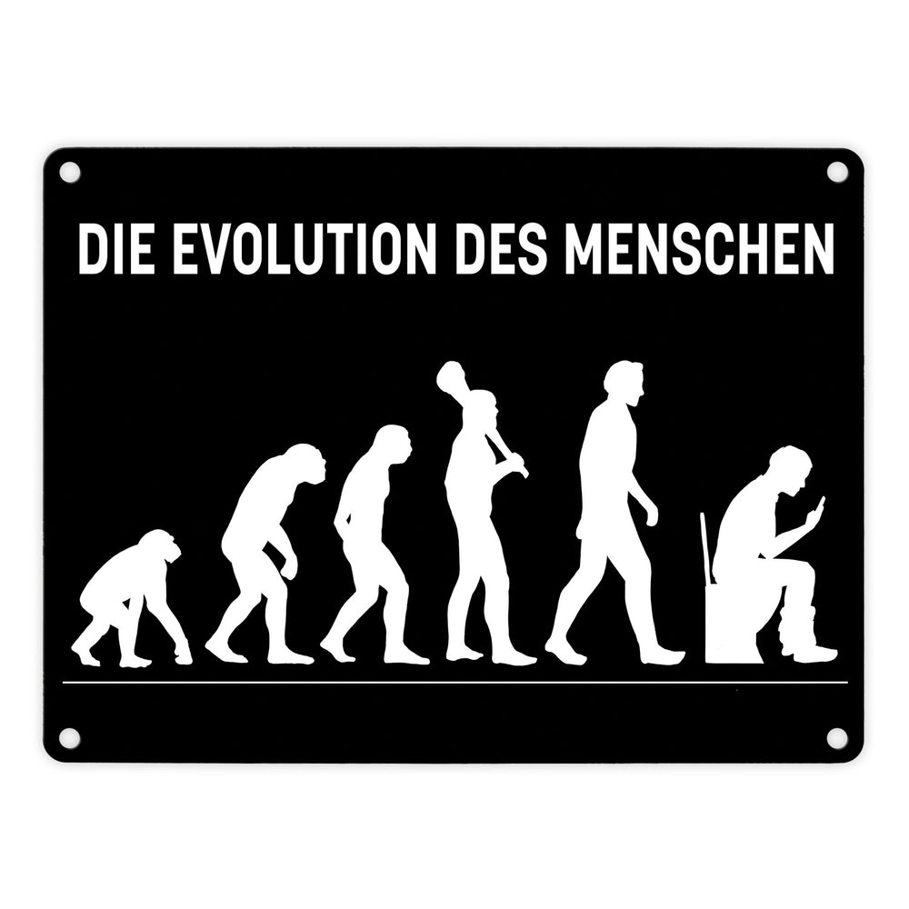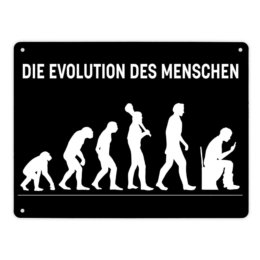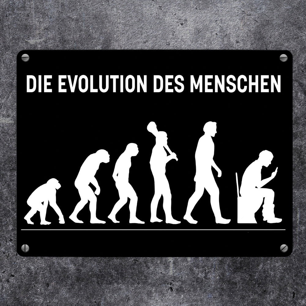 - 1x Die Evolution des Menschen Metallschild mit witzigem Motiv für die Toilette in der gewählten Größe