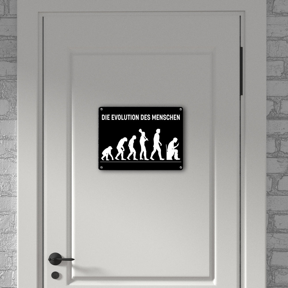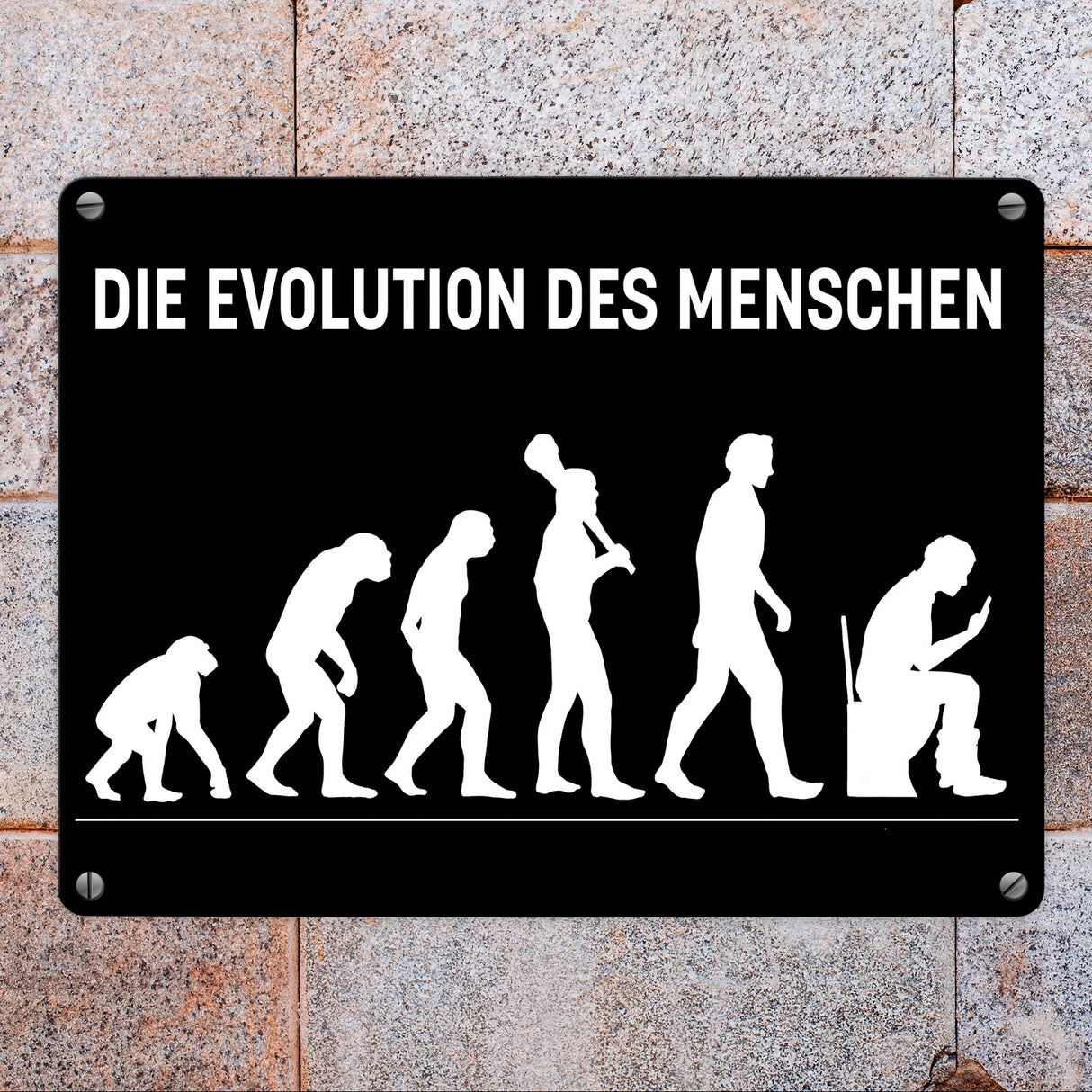 Die Evolution des Menschen Metallschild mit witzigem Motiv für die Toilette