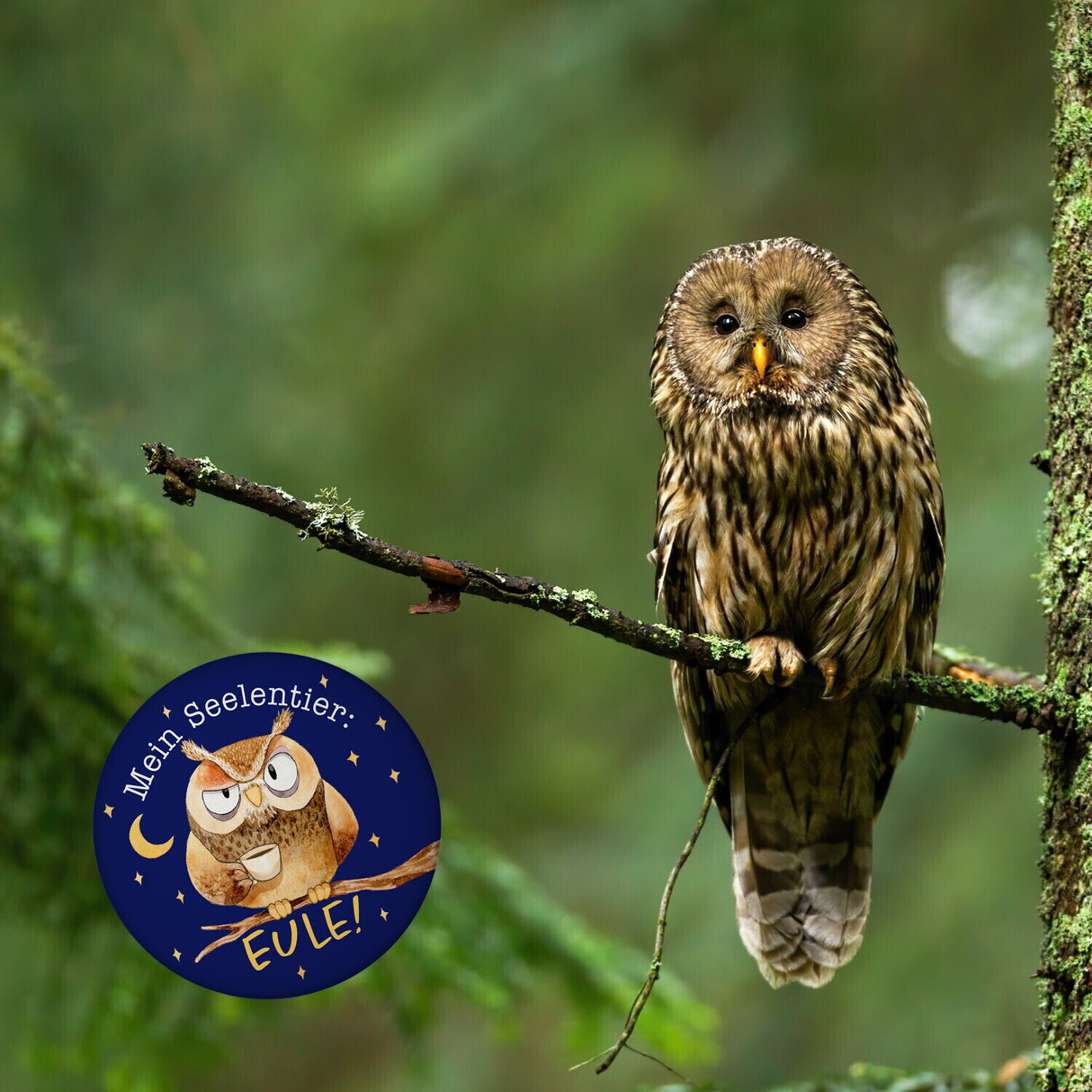 • 1x Eule Magnet rund rund mit Spruch Mein Seelentier Eule in der gewählten Ausführung