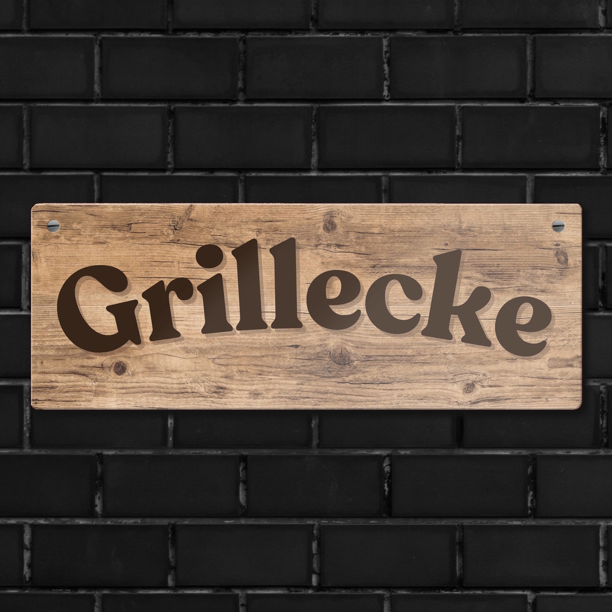 - Frisch aus dem Feuer der Kreativität kommt unser Metallschild "Grillecke", das jede langweilige Wand in das Highlight des Gartens verwandelt! Mit seinem rustikalen Holzhintergrund und dem prägnanten Spruch zieht es Grillmeister und Würstchen-Wender magisch an.