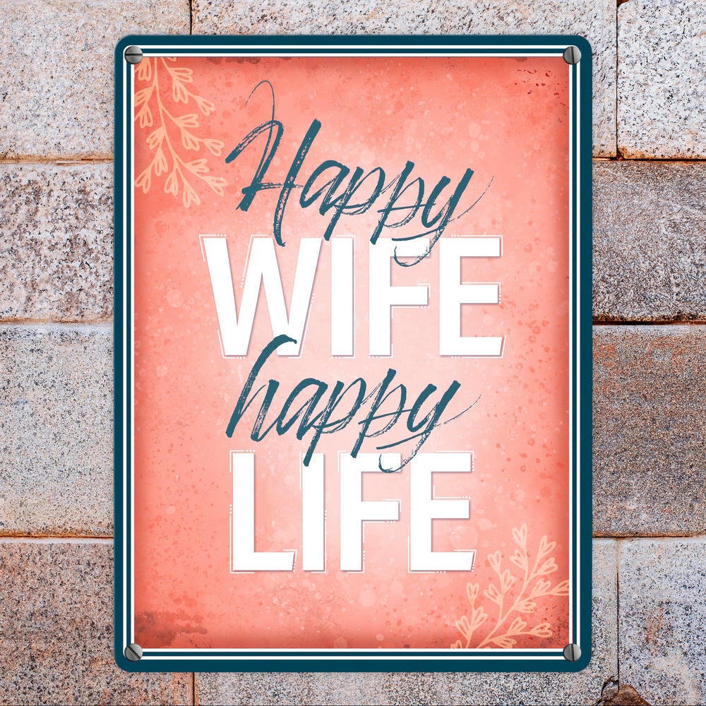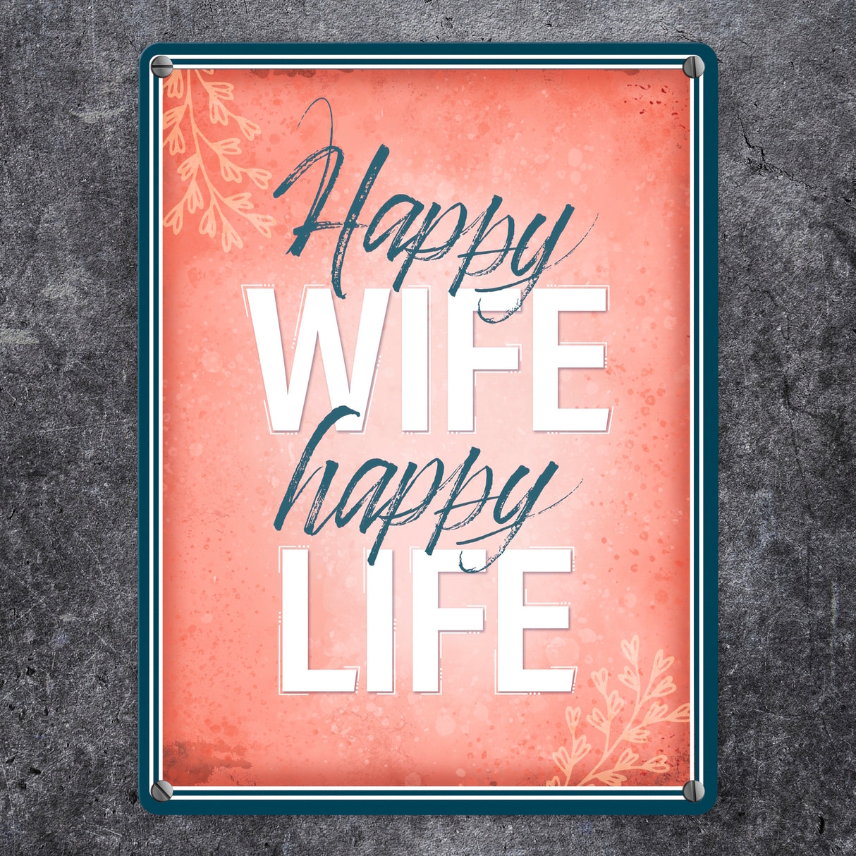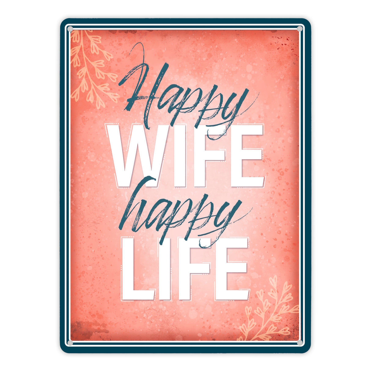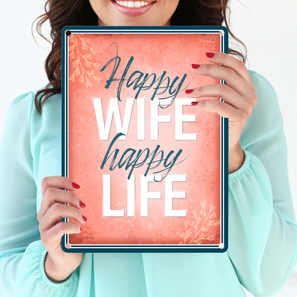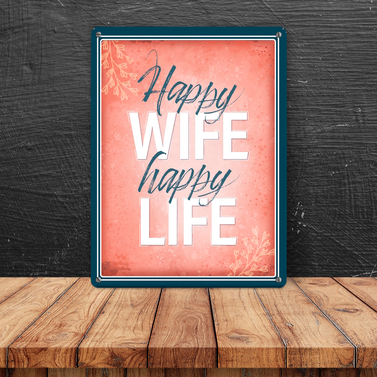 Happy wife happy life Metallschild - 15x20 cm ist auf Lager und wird versandt, sobald es wieder verfügbar ist