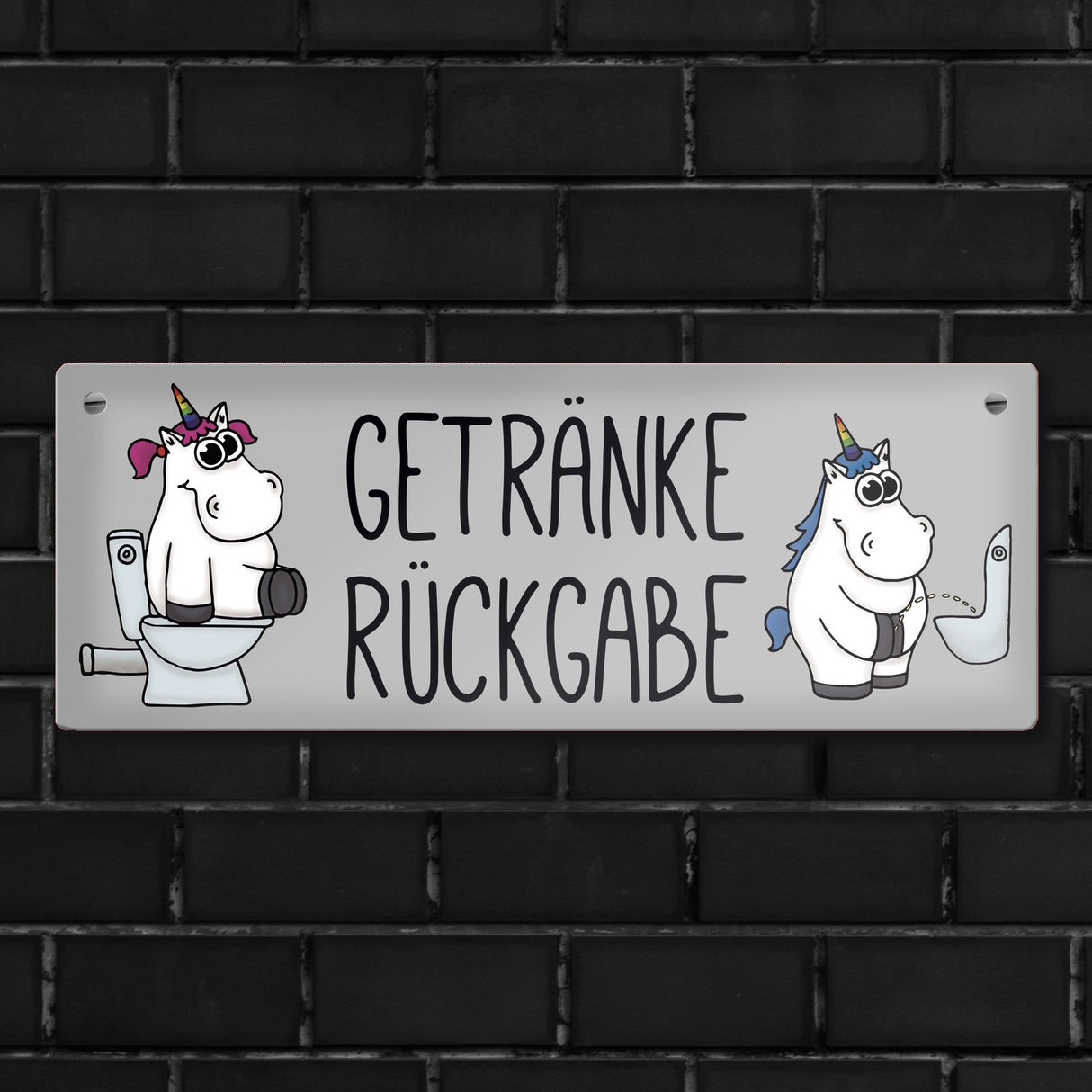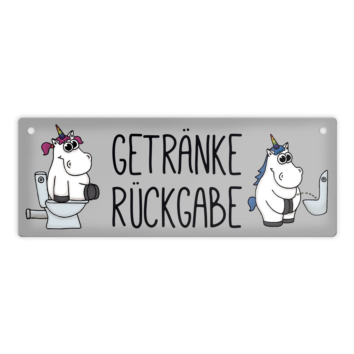 Toilettenschilder müssen nicht nur schlichte Strichzeichnungen von Mann und Frau sein, sondern können auch individuell und lustig gestaltet sein. So gibt das Einhorn Getränkerückgabe Metallschild jedem etwas beim Toilettengang zu schmunzeln. Hinweise: Material: Aluminium / Dicke: 0,5 mm