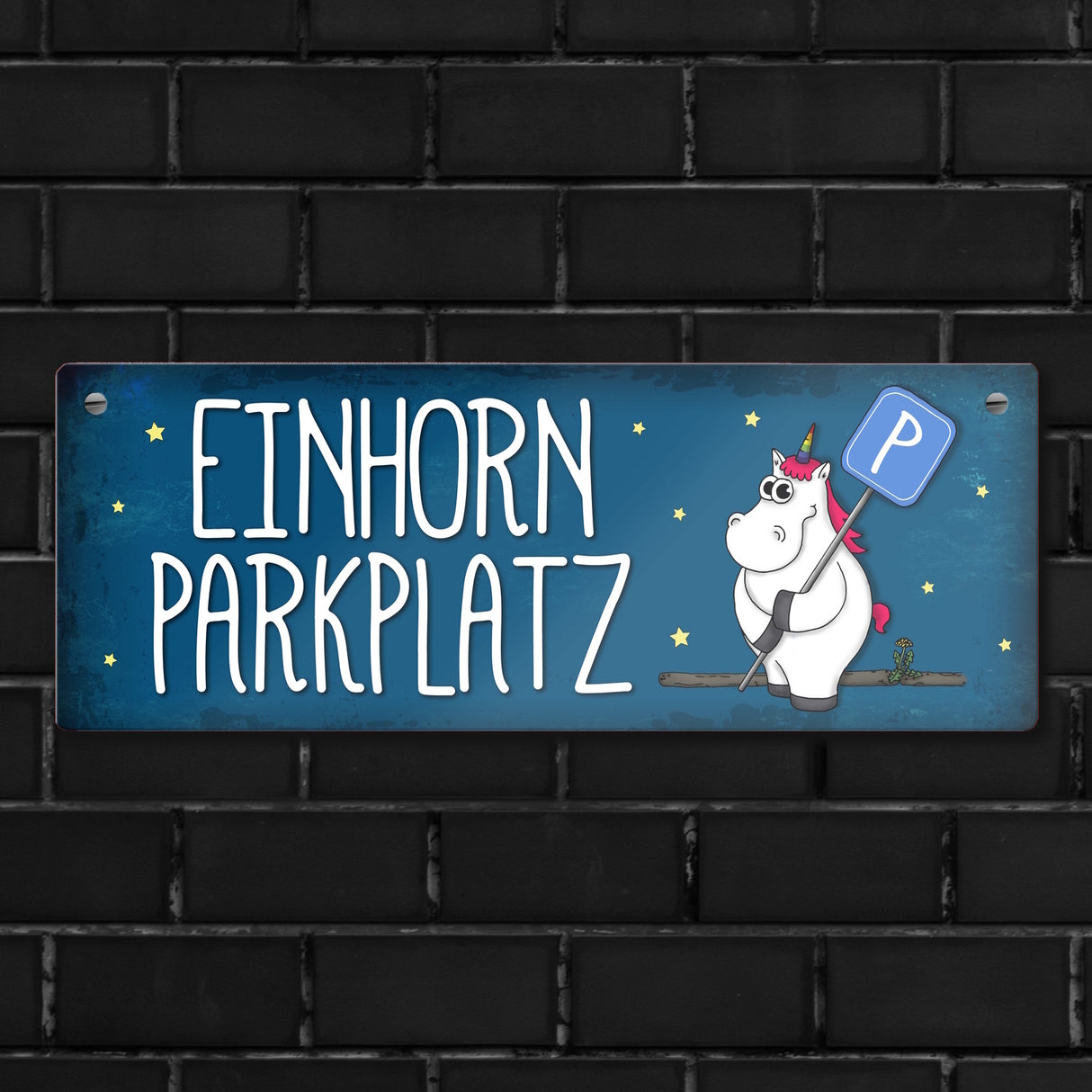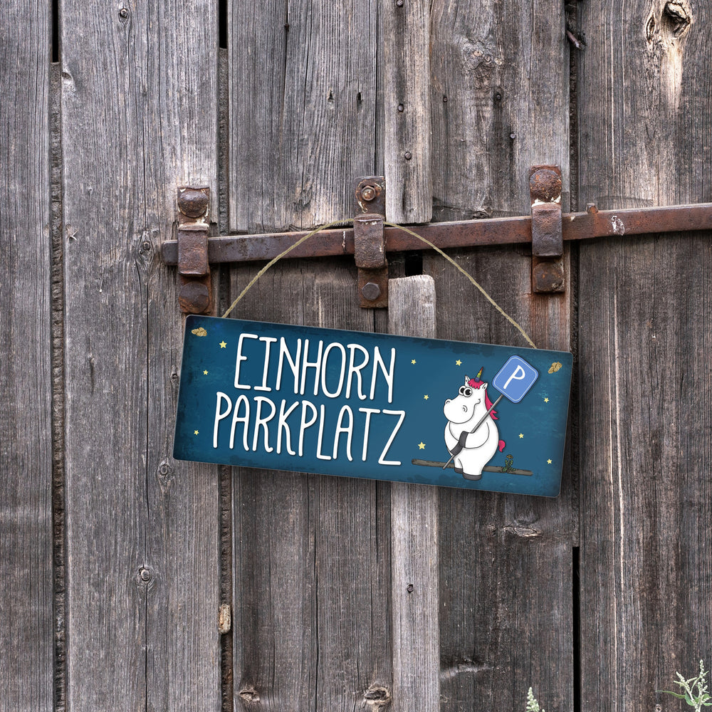 • Lieferumfang: Honeycorns Metallschild mit Einhornparkplatz Motiv