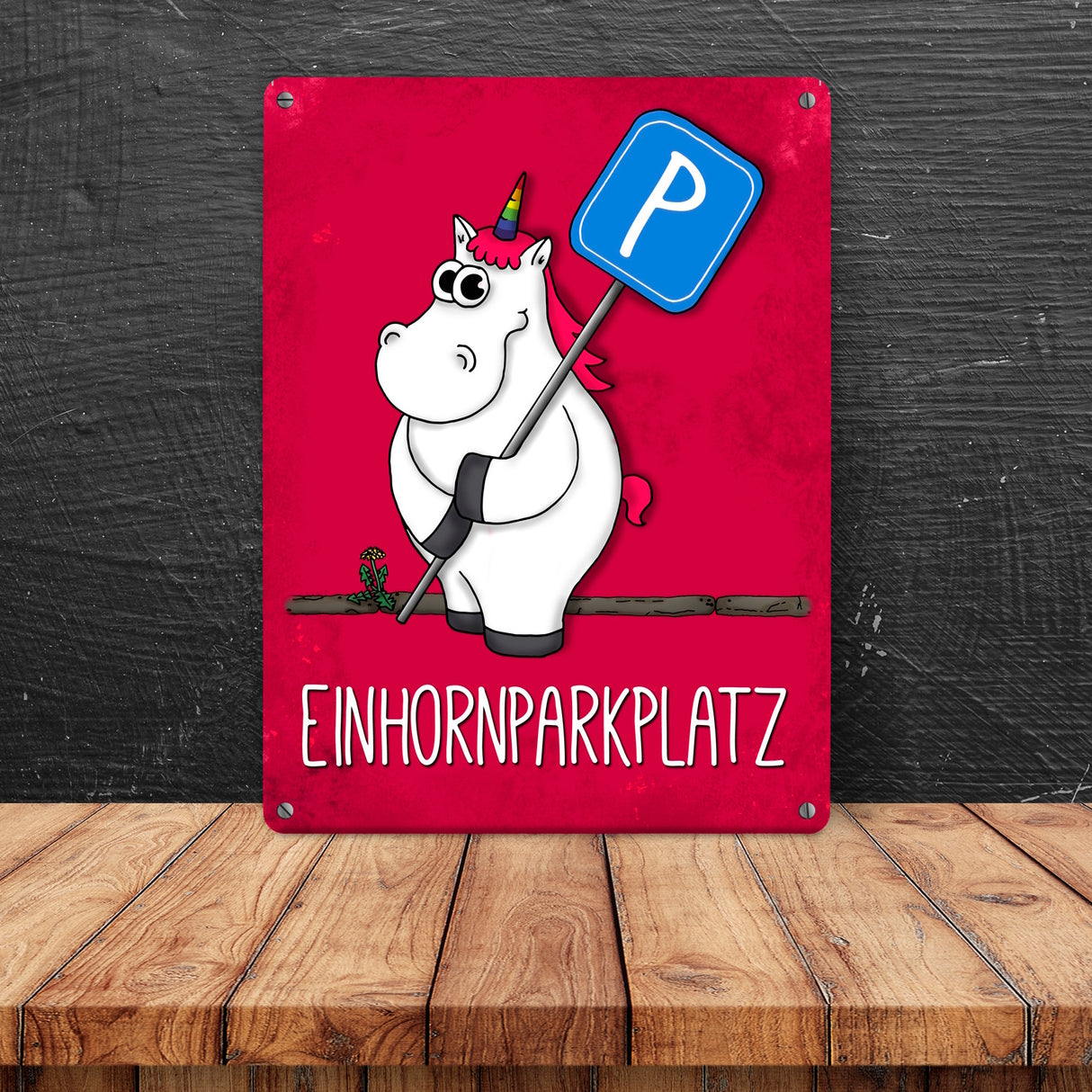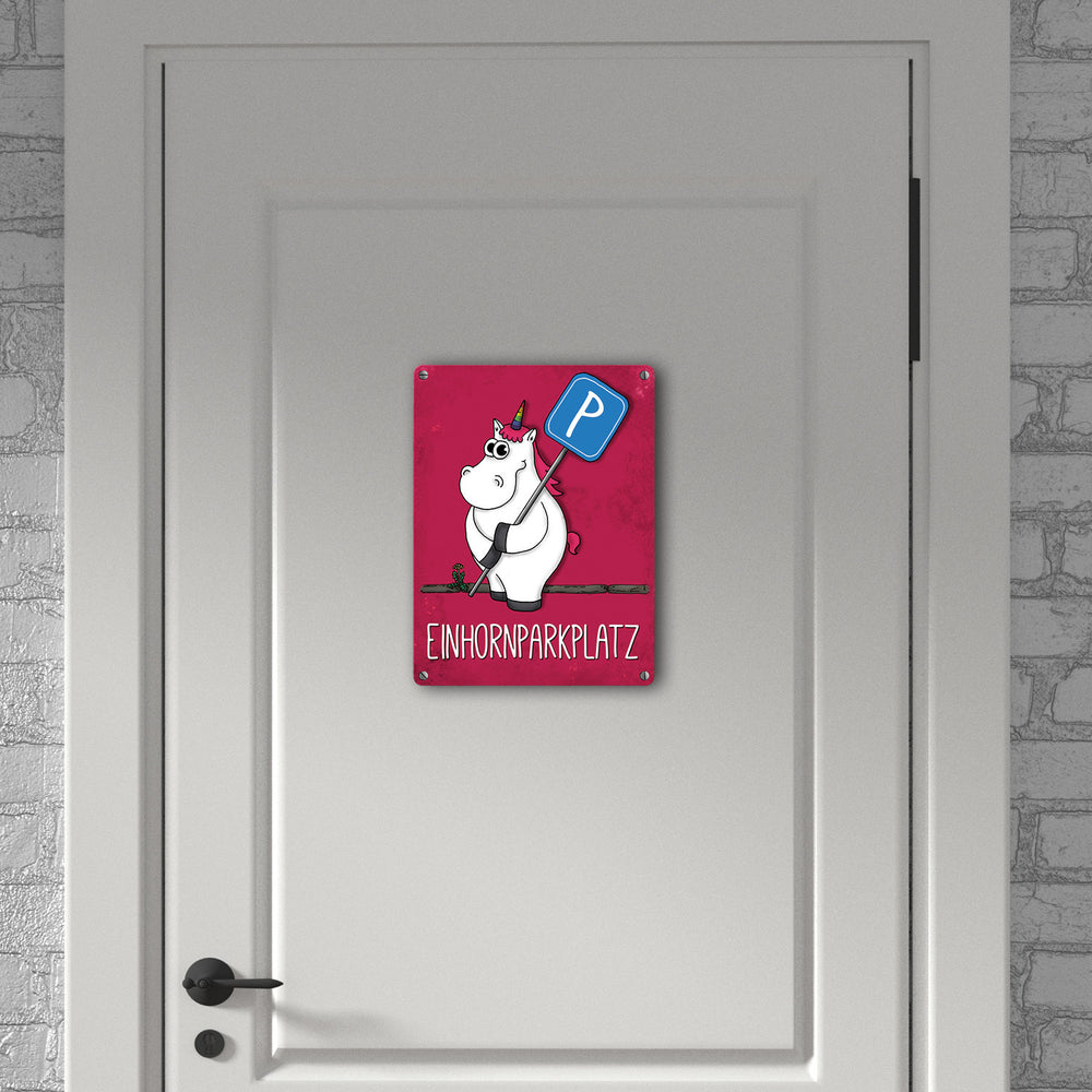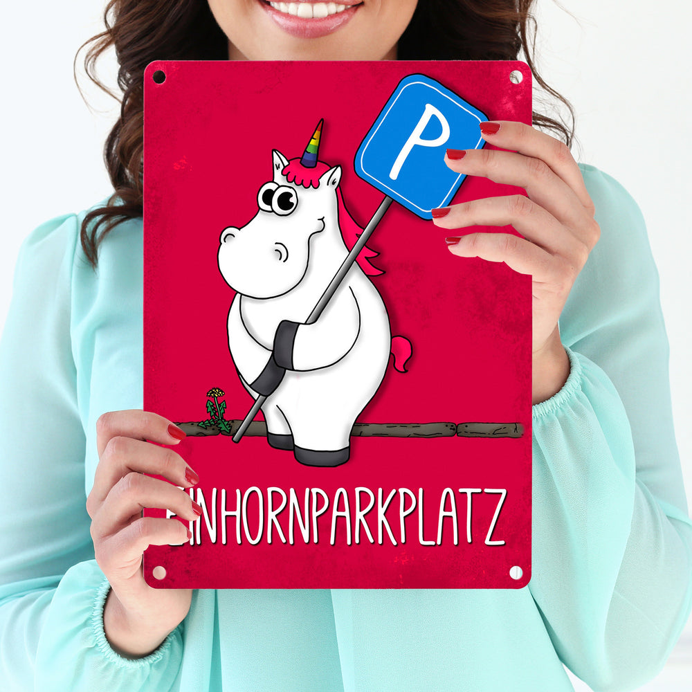 - Lieferumfang: Honeycorns Metallschild mit Einhornparkplatz Motiv